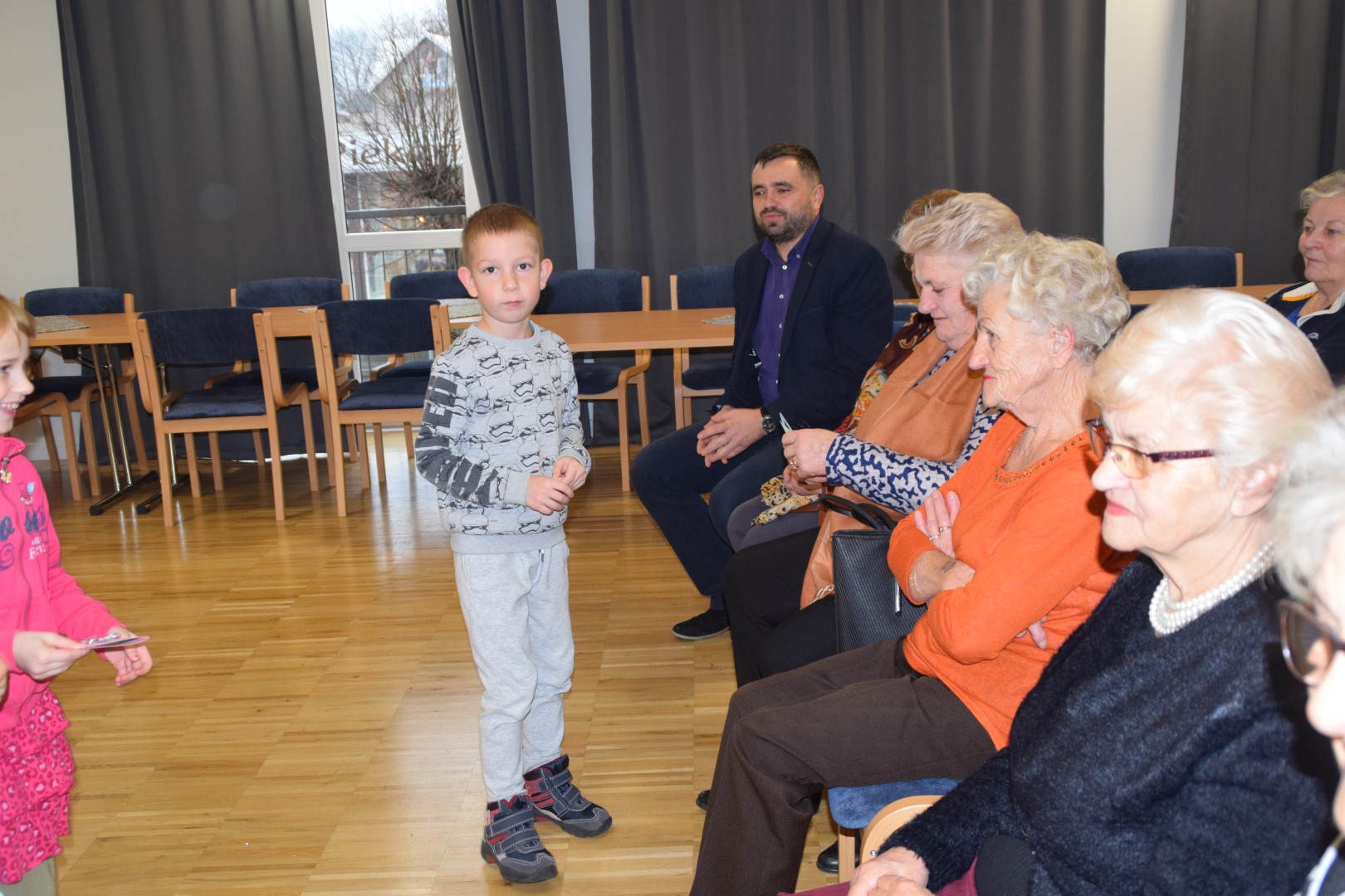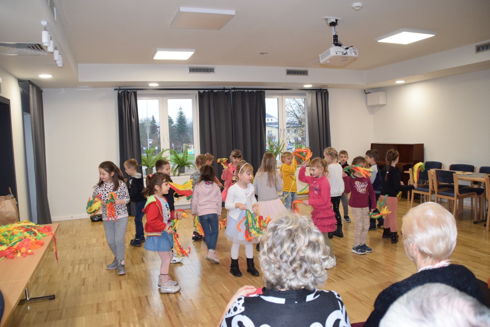 16 listopada przedszkolaki z VI grupy Skrzaty z opiekunkami Marią Serek i Moniką Olejnicką spotkały się z członkami i członkiniami klubu seniora w Tarnogrodzkim Ośrodku Kultury w związku z akcją charytatywną „Herbatka dla Seniora”.
