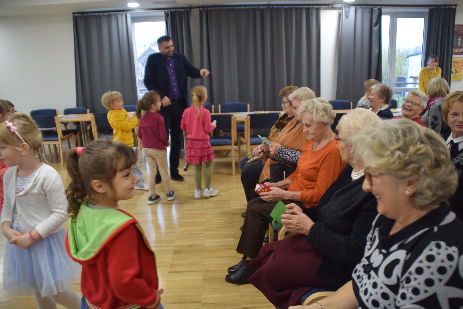 Wzruszeni seniorzy podziękowali przedszkolakom za ich występ i możliwość wspólnie spędzonego przedpołudnia. Po części artystycznej zebrani wraz z burmistrzem Pawłem Decem i dyrektorką Tarnogrodzkiego Ośrodka Kultury Renatą Ćwik świętowali wspólnie przy gorącej herbacie.