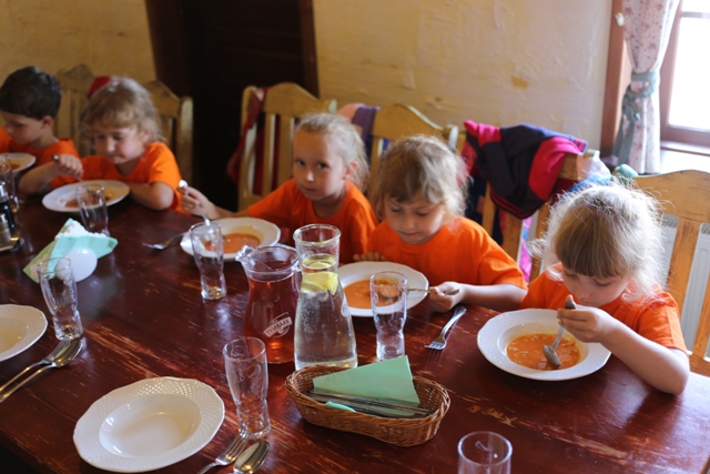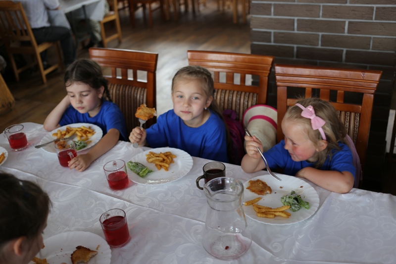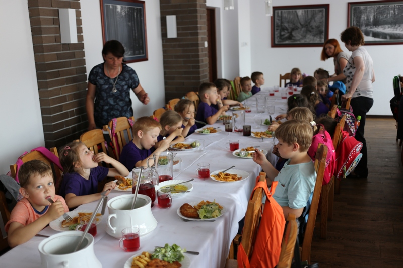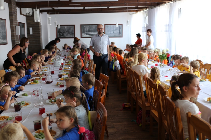 Dużym przeżyciem było zwiedzenie mini stadniny koni różnych ras i maści. Poznanie pracy w stajni, zapoznanie się z końmi, pokaz czyszczenia i siodłania konia, wszystko to stanowiło zachętę do odkrywania dalszych przygód. Najmłodszym z pewnością spodobały się zespołowe gry na świeżym powietrzu, w których brali udział podzieleni na drużyny oraz odpoczynek na placu zabaw.