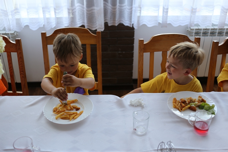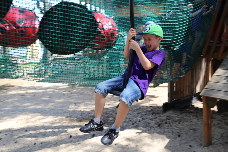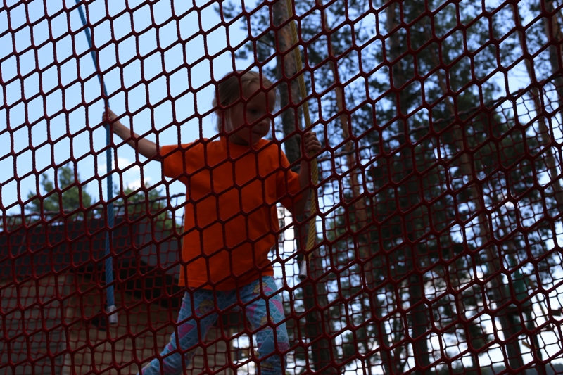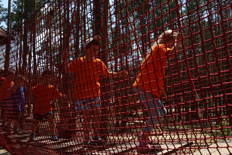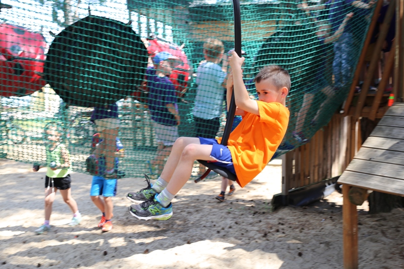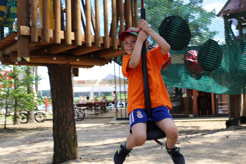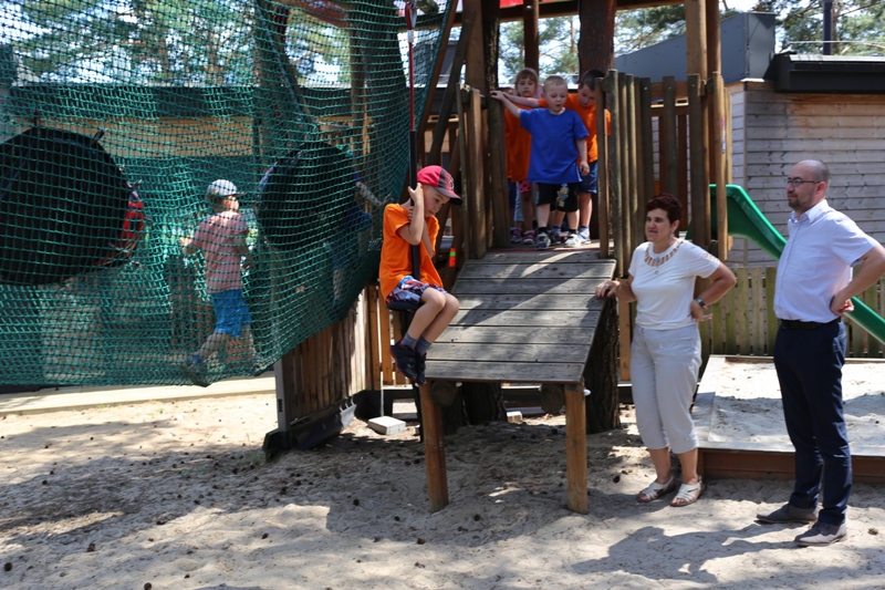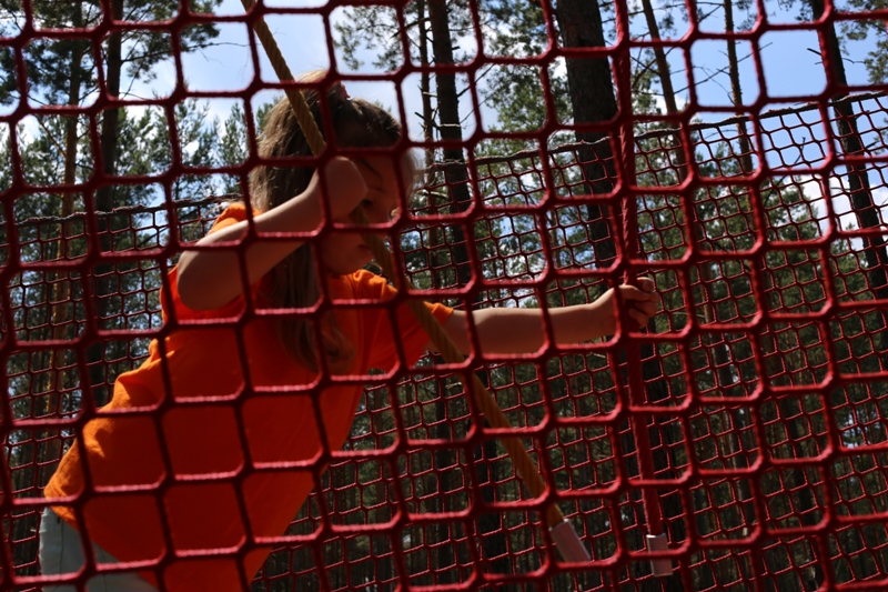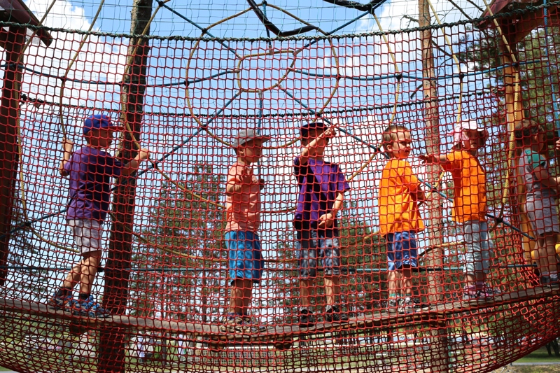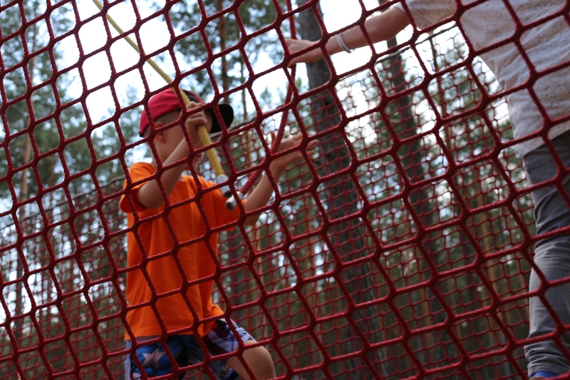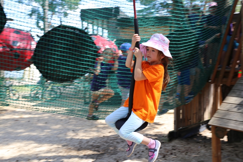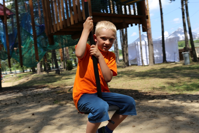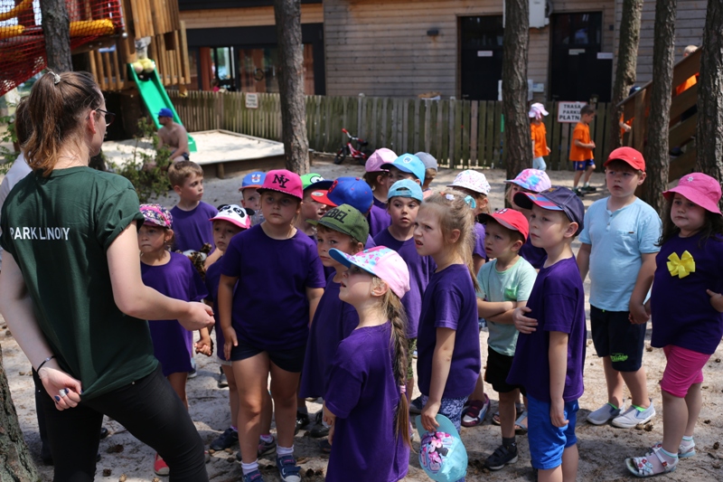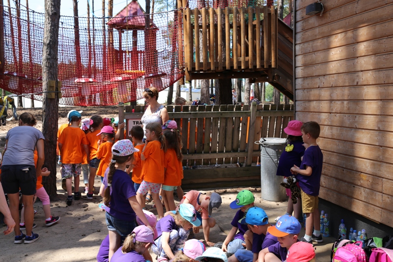 Po konsumpcji obiadu i krótkiej regeneracji, dzieci z Przedszkola Miejskiego w Tarnogrodzie odkrywały uroki parku linowego, gdzie specjalnie dla najmłodszych przygotowano trasę linową z przeszkodami w postaci różnego rodzaju grzybków, podestów, siatek, obręczy i tuneli, a pełne bezpieczeństwo zapewniła siatka asekuracyjna chroniąca przedszkolaki na całej trasie.