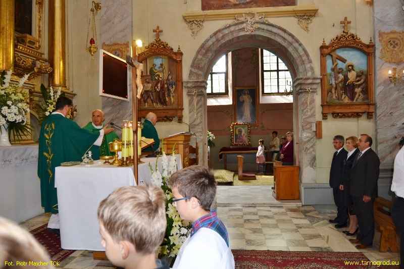 Następnie wszyscy udali się na Mszę Świętą do kościoła parafialnego. Koncelebrę sprawował ks. prałat Ryszard Lis wraz z ks. prałatem Edwardem Ludwickim i ks. dziekanem Jerzym Tworkiem.