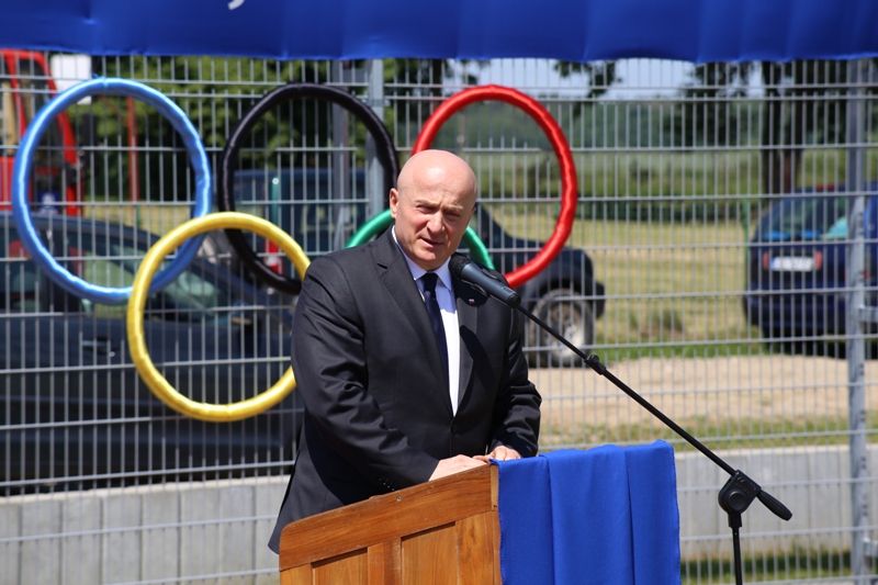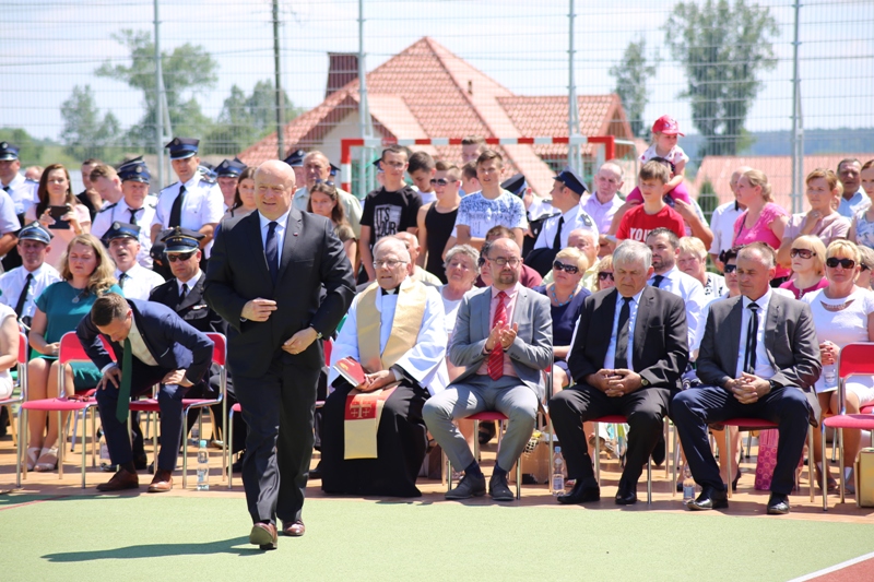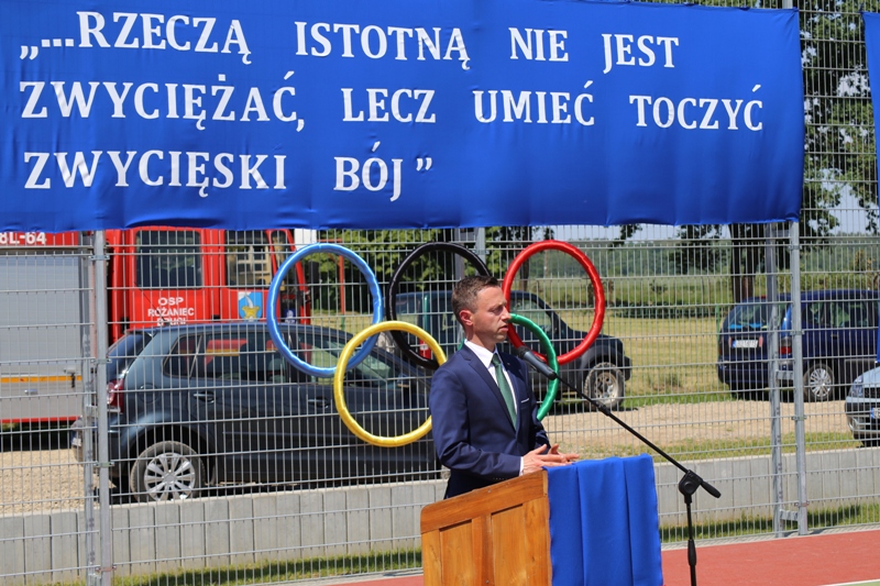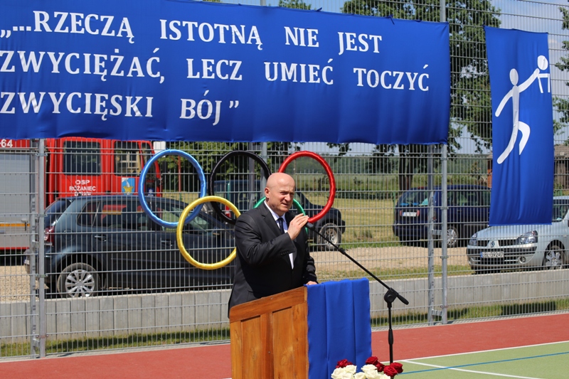 Uroczystość otwarcia boiska wielofunkcyjnego poprzedzona została odegraniem przez orkiestrę dętą Hymnu Państwowego, po czym Burmistrz Tarnogrodu Eugeniusz Stróż serdecznie powitał wszystkich przybyłych gości a przede wszystkim Wiceministra Sportu Pana Jarosława Stawiarskiego. Następnie głos zabierali zaproszeni goście, między innymi Radny Sejmiku Województwa Lubelskiego Michał Mulawa oraz Wiceminister Sportu i Turystyki Jarosław Stawiarski. Dziękując za zaproszenie na uroczystość, przekazali lokalnej młodzieży szkolnej oraz przyszłym użytkownikom powstałej infrastruktury sprzęt sportowy.