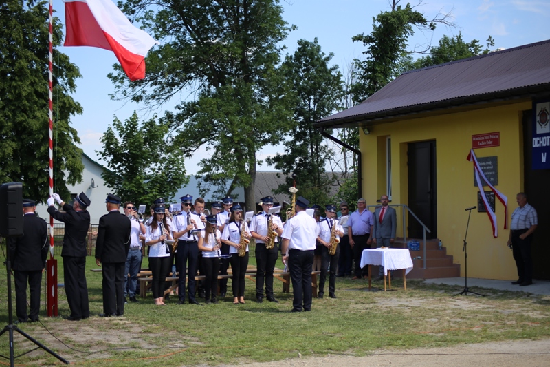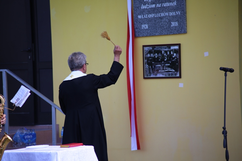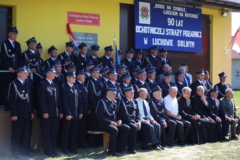 Kolejna część uroczystości odbyła się przed siedzibą OSP Luchów Dolny, tam też wszystkie zastępy OSP wraz z pocztami sztandarowymi a także Tarnogrodzka Orkiestra Dęta zebrali się na placu przed budynkiem OSP. Po wystąpieniach Eugeniusza Stróża Prezesa Zarządu Oddziału Gminnego ZOSP RP w Tarnogrodzie, Starszego Brygadiera Mieczysława Skury – Członka Prezydium Zarządu Oddziału Wojewódzkiego Związku OSP RP oraz Prezesa Zarządu Oddziału Powiatowego Związku OSP RP w Biłgoraju, a także Brygadiera Mirosława Burego – Zastępcy Komendanta Powiatowego Państwowej Straży Pożarnej w Biłgoraju nastąpiło uroczyste poświęcenie tablicy pamiątkowej z okazji 90-lecia OSP Luchów Dolny, którego dokonał Proboszcz Parafii Luchów Górny Ks. Adam Siedlecki. Ostatnią częścią uroczystości było wręczenie odznaczeń dla zasłużonych działaczy OSP Luchów Dolny oraz pozostałych strażaków służących w zastępach OSP na terenie naszej gminy. Na koniec głos zabrał Grzegorz Karaś – Prezes OSP Luchów Dolny, który podziękował wszystkim za udział w uroczystości oraz zaprosił na wspólny poczęstunek.