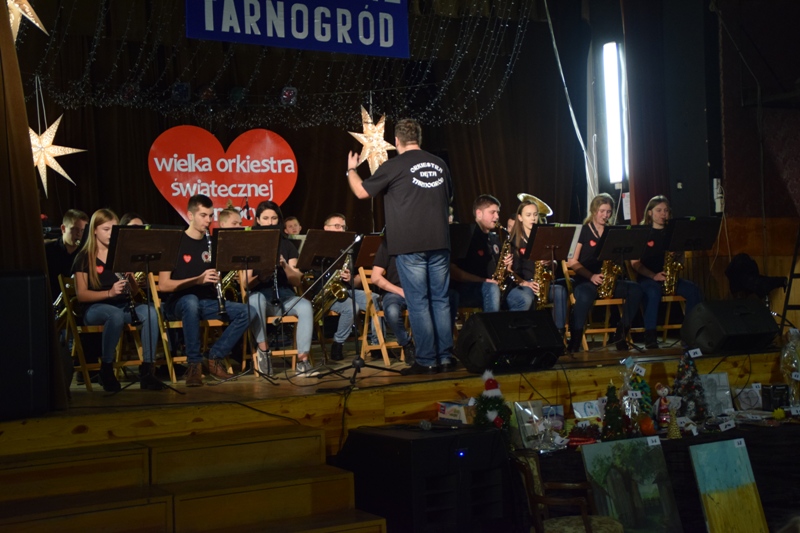 13 stycznia odbył się 27. Finału Wielkiej Orkiestry Świątecznej Pomocy. Kilkugodzinną imprezą zorganizowaną przez Tarnogrodzki Ośrodek Kultury składałającą się z kilku bloków "grał" również Tarnogród. Na początku zaprezentowały się grupy działające przy TOK-u: zespoły taneczne przygotowane przez Małgorzatę Zając, zespół wokalny, którego instruktorka jest Grażyna Barcicka, Tarnogrodzka Orkiestra Dęta, której kapelmistrz Grzegorz Szteinmiller rozpoczął 1. Tarnogrodzką Aukcję z SERDUSZKIEM licytacją koszulki orkiestry z podpisami wszystkich jej członków. Dalszą licytację prowadzili Wiktoria Fus i Michał Malinowski. Nasi darczyńcy ofiarowali tak dużo, że trudno było wyrobić się do 19.00, kiedy to wolontariusze ze szkoły podstawowej w Tarnogrodzie musieli udać się z puszkami do sztabu do Biłgoraja. Były zegarki, dyski, słuchawki, mopy, kupony upominkowe, vouchery na słodkości, zabiegi kosmetyczne, kolacje, gadżety reklamowe, rękodzieło artystyczne, obrazy, rzeźby, karnety na fitness, książki, monety okolicznościowe, kombinezon mistrza, puchar, koszulki, albumy, płyty, dekoracje świąteczne wykonane przez dzieci z Przedszkola Miejskiego w Tarnogrodzie i mnóstwo innych. Udało się sprzedać wszystko! Goście nie żałowali grosza. Uzyskaliśmy kwotę 4545 zł, co w połączeniu z pieniędzmi zebranymi przez wolontariuszy do puszek dało 11 330,83 zł. To naprawdę imponujący wynik. Pierwsza odsłona licytacji trwała około godziny. Później na scenie zaprezentowały się zespoły muzyczne z Tarnogrodu, Biłgoraja i okolic. Były to: PROJEKT NIESPODZIANKA, PIRAJAMA COFFEE, ROCKOUT, FIRE OVER LIMITS I FIRE LBL. W przerwach między koncertami trwała licytacja. Publiczność dopisała bardzo licznie. Panowała bardzo przyjazna i życzliwa atmosfera. Światełko do nieba nie poleciało – było zbyt wietrznie, ale każdy miał go mnóstwo w sobie.