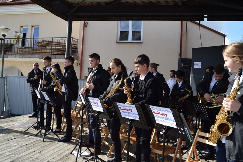 29 września na tarnogrodzkim rynku rozbrzmiały utwory marszowe, standardy jazzowe, muzyka latynoamerykańska, filmowa i pop. Niedzielne popołudnie umiliła Tarnogrodzka Orkiestra Dęta, która prezentowała nowe brzmienia możliwe dzięki dofinansowaniu pozyskanemu przez Tarnogrodzki Ośrodek Kultury ze środków pozostających w dyspozycji ministra właściwego do spraw kultury i ochrony dziedzictwa narodowego w ramach programu INFRASTRUKTURA DOMÓW KULTURY 2019 pochodzących z funduszu promocji kultury na realizację zadania pod nazwą Rozwój Tarnogrodzkiej Orkiestry Dętej – zakup wyposażenia na potrzeby prowadzenia edukacji kulturalnej. Projekt realizowany był w kilku etapach: na początku zrobiono rozeznanie na rynku oraz przeprowadzono kampanię promocyjną zadania, na kolejnym etapie zorganizowano profesjonalne warsztaty dla muzyków w trakcie wyjazdu orkiestry na Ukrainę, pozyskano cztery nowe osoby, które po roku nauki gry na instrumentach dętych zasilą szeregi tarnogrodzkiej orkiestry. Następnie zakupiono instrumenty i akcesoria muzyczne. Działania te już przyczyniły się do podniesienia poziomu artystycznego występów, co publiczność mogła podziwiać w niedzielę, kiedy na scenie letniej TOK na uroczystym koncercie podsumowującym projekt zaprezentowali się młodzi muzycy pod batutą Grzegorza Szteimillera. Gra w orkiestrze jest dla jej członków wielką pasją, którą zarażają młodych ludzi z naszego regionu.