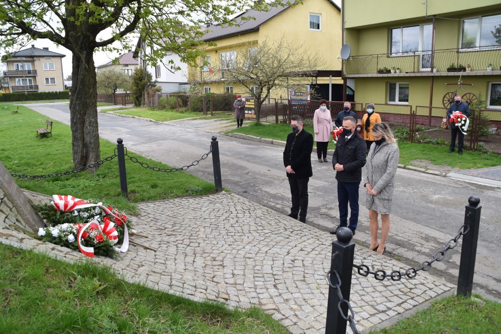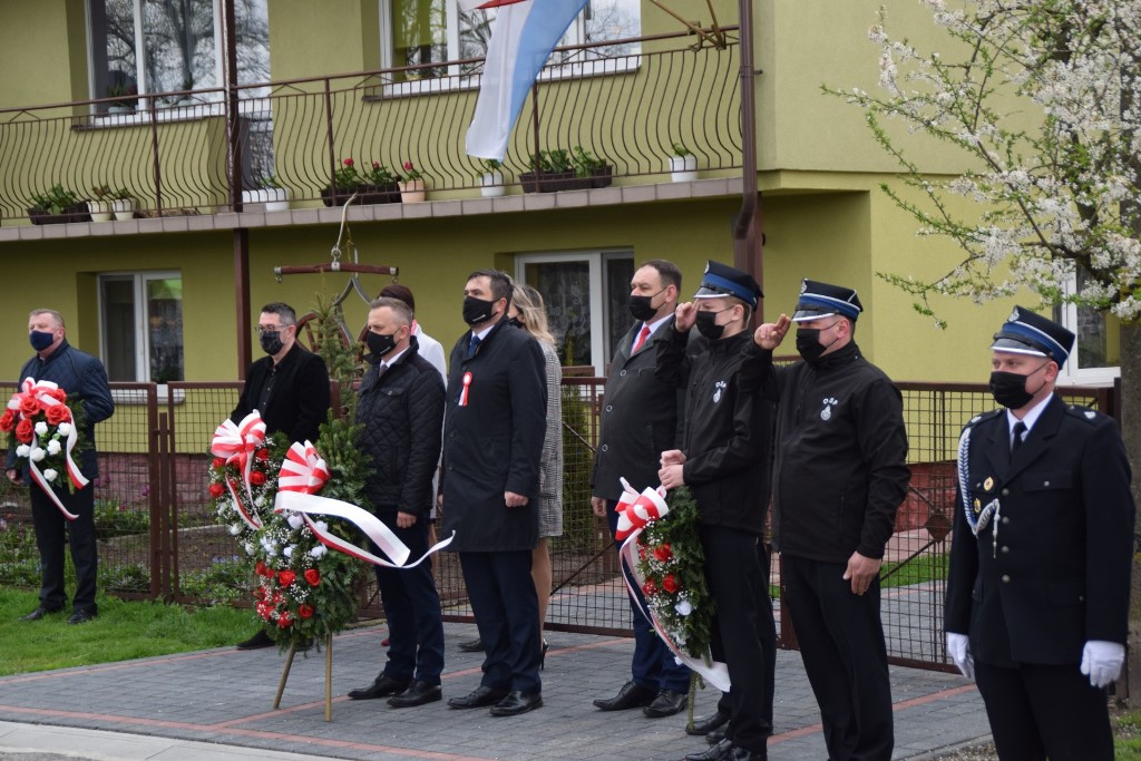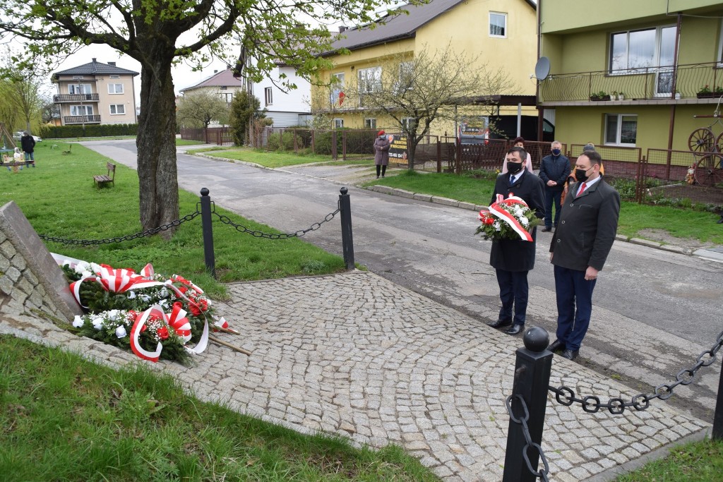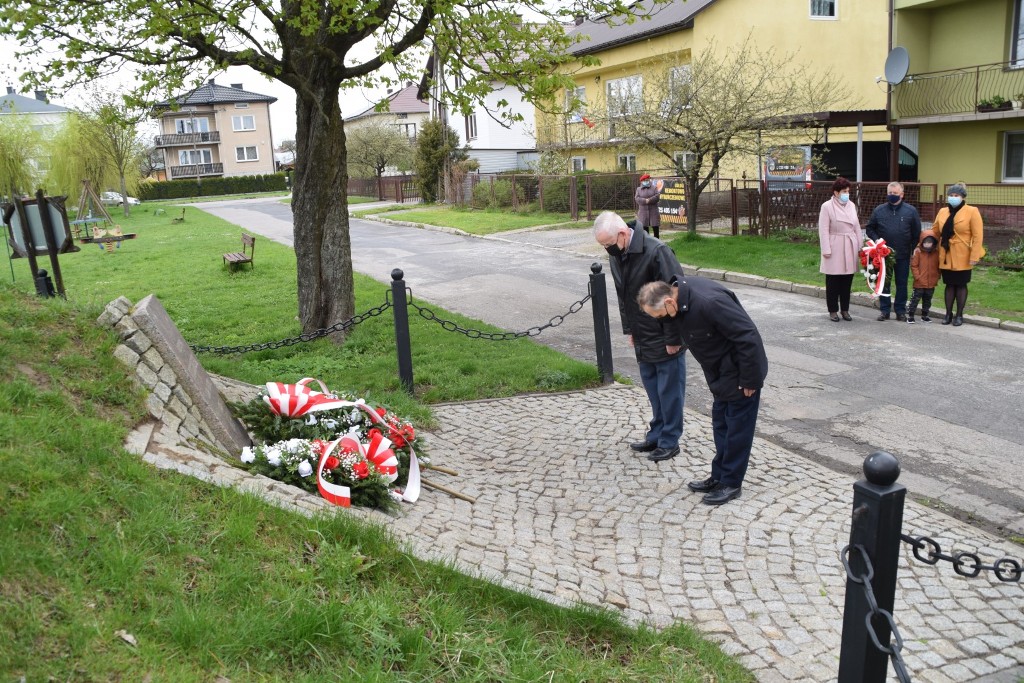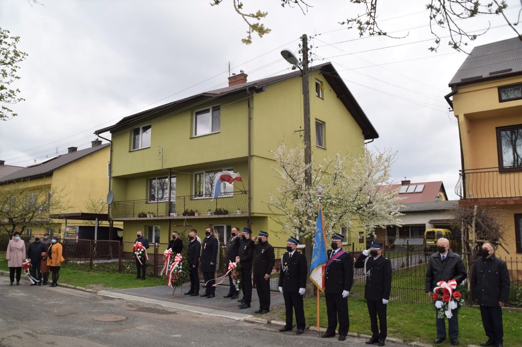 Następnie przy dźwiękach hymnu burmistrz Paweł Dec i zastępca Tomasz Legieć złożyli kwiaty pod tablicą pamiątkową przy kopcu Tadeusza Kościuszki na Przedmieściu Błonie w Tarnogrodzie. Oprócz nich wiązanki złożyli przewodniczący rady Dariusz Dołomisiewicz wraz z wiceprzewodniczącą rady Elżbietą Zań i radnym Danielem Mazurkiem, radny Ryszard Szponar - reprezentujący także Koło Gminne Prawo i Sprawiedliwość, Bronisław Misiągiewicz i Jan Waluda w imieniu członków Społecznego Komitetu Utrwalania Dziedzictwa Historycznego i Patriotycznego Ziemi Tarnogrodzkiej. W uroczystości uczestniczyła także delegacja Ochotniczej Straży Pożarnej z Tarnogrodu oraz delegacje placówek oświatowych.
