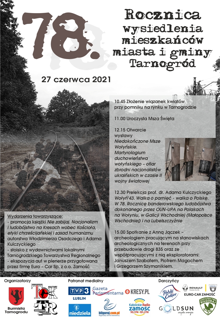 27 czerwca 2021 roku w Tarnogrodzie uczczono 78. rocznicę wysiedlenia mieszkańców miasta i gminy Tarnogród. Obchody rozpoczęły się od złożenia wiązanek kwiatów przy pomniku na rynku w Tarnogrodzie przez delegacje z urzędów, placówek oświatowych i instytucji. Kwiaty złożyli: Burmistrz Tarnogrodu wraz z Przewodniczącym Rady Miejskiej i Radnym RM, delegacje Miejskiej Biblioteki Publicznej, Tarnogrodzkiego Zakładu Komunalnego, Szkoły Podstawowej im. Marii Curie – Skłodowskiej w Tarnogrodzie, Szkoły Podstawowej w Woli Różanieckiej, Środowiskowego Domu Samopomocy oraz profesor Adam Kulczycki. Następnie zebrani udali się do kościoła, gdzie została odprawiona uroczysta Msza Święta. Po nabożeństwie uczestnicy przeszli do Tarnogrodzkiego Ośrodka Kultury, gdzie Dyrektor TOK Renata Ćwik i Burmistrz Tarnogrodu Paweł Dec wraz z gościem prof. Adamem Kulczyckim otworzyli wystawę Niedokończone Msze Wołyńskie. Martyrologium duchowieństwa wołyńskiego – ofiar zbrodni nacjonalistów ukraińskich w czasie II wojny światowej. Profesor w kilku zdaniach wprowadził do tematyki ekspozycji. Opowiada ona o tragicznym wycinku historii polskiego narodu, o okrutnych, dramatycznych wydarzeniach, które rozegrały się na Wołyniu w 1943, a swój początek miały 11 lipca 1943 roku (Krwawa Niedziela na Wołyniu). Ukraińska Powstańcza Armia zaatakowała katolickie świątynie. Ginęli zgromadzeni w nich wierni i duchowni. Ekspozycja Niedokończone Msze Wołyńskie... powstała, aby uczcić pamięć kapłanów, którzy okrutną śmiercią zakończyli wtedy życie.