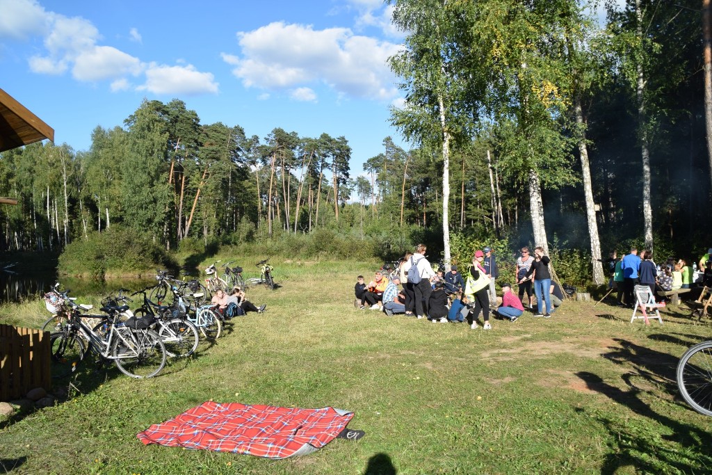 W połowie drogi w pięknym miejscu nad jeziorkiem w lesie luchowskim zwanym „Czerwonym Brodem” zorganizowano ognisko, na którym wszyscy bez wyjątku mogli sobie upiec pyszną kiełbaskę i przy posiłku podzielić się wrażeniami z wycieczki. Kto chciał, mógł obejrzeć tamy bobrów i inne leśne atrakcje, a Paweł Dec opowiedział o niezwykłej historii tego miejsca.
