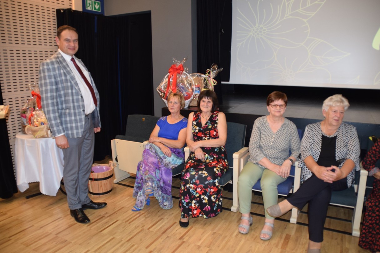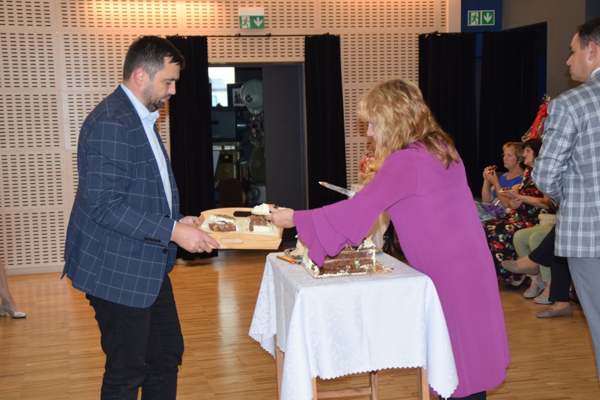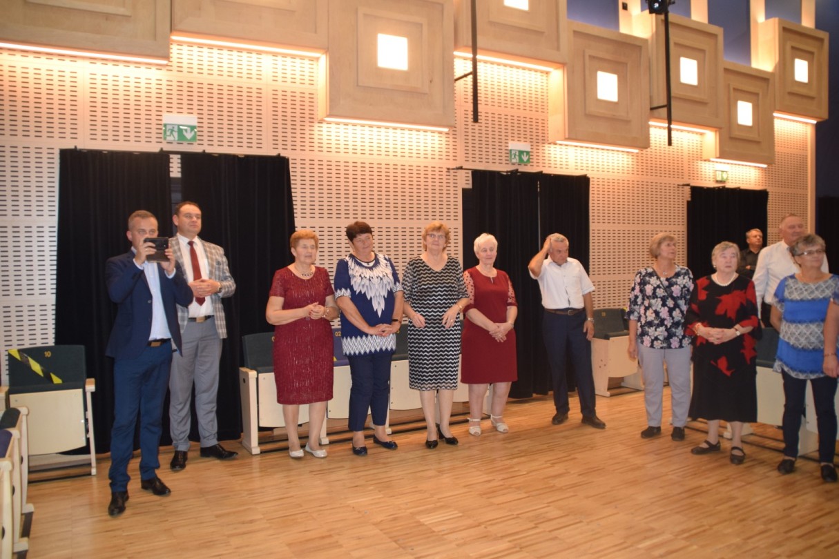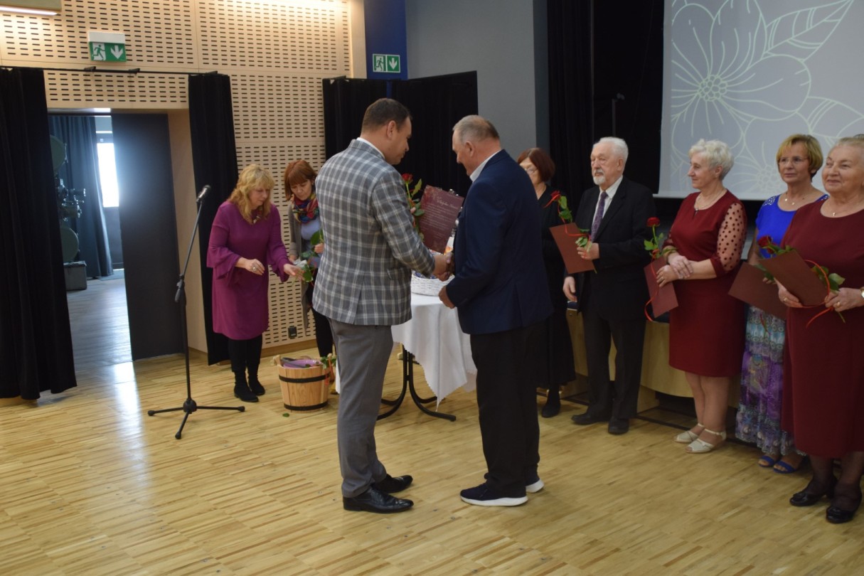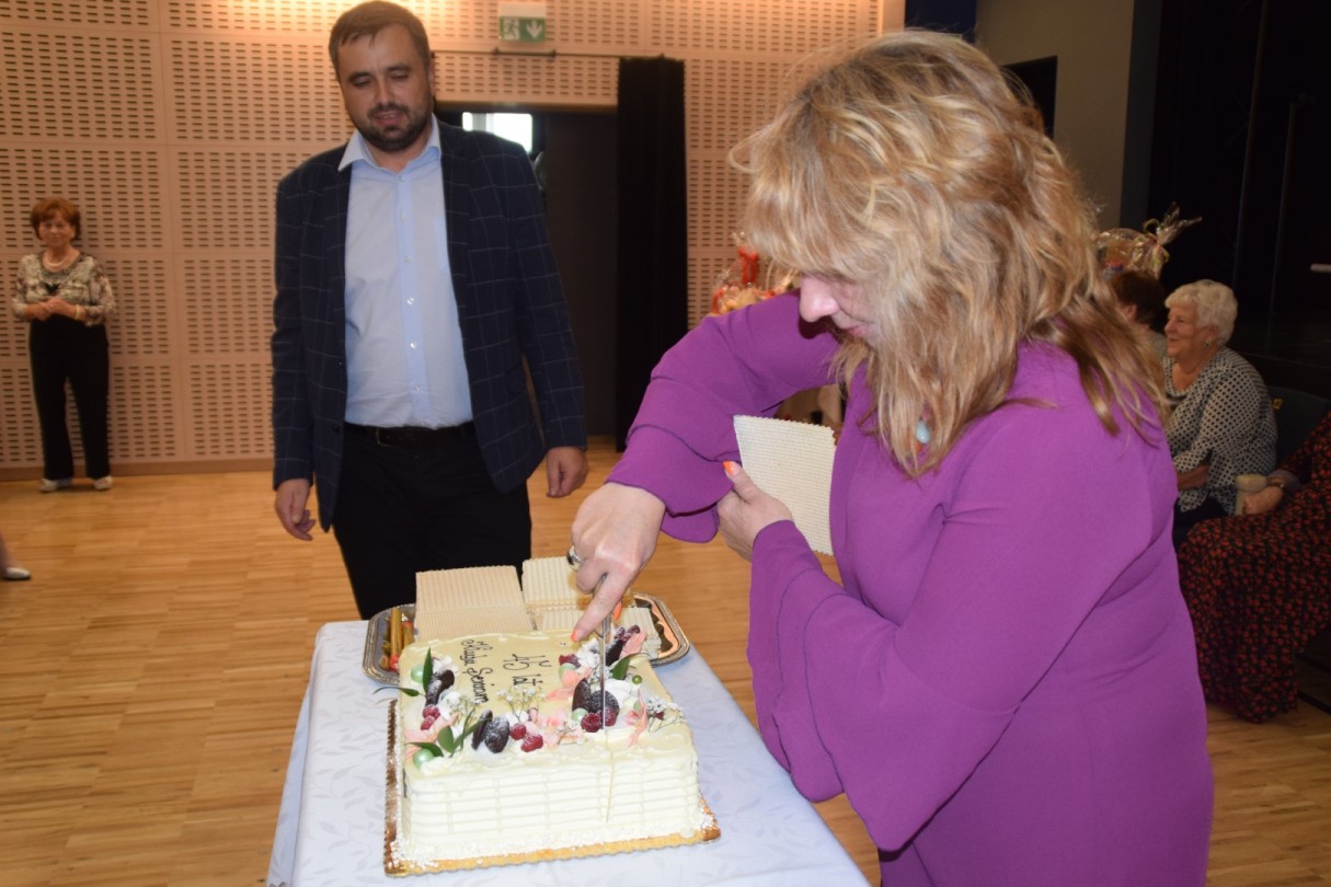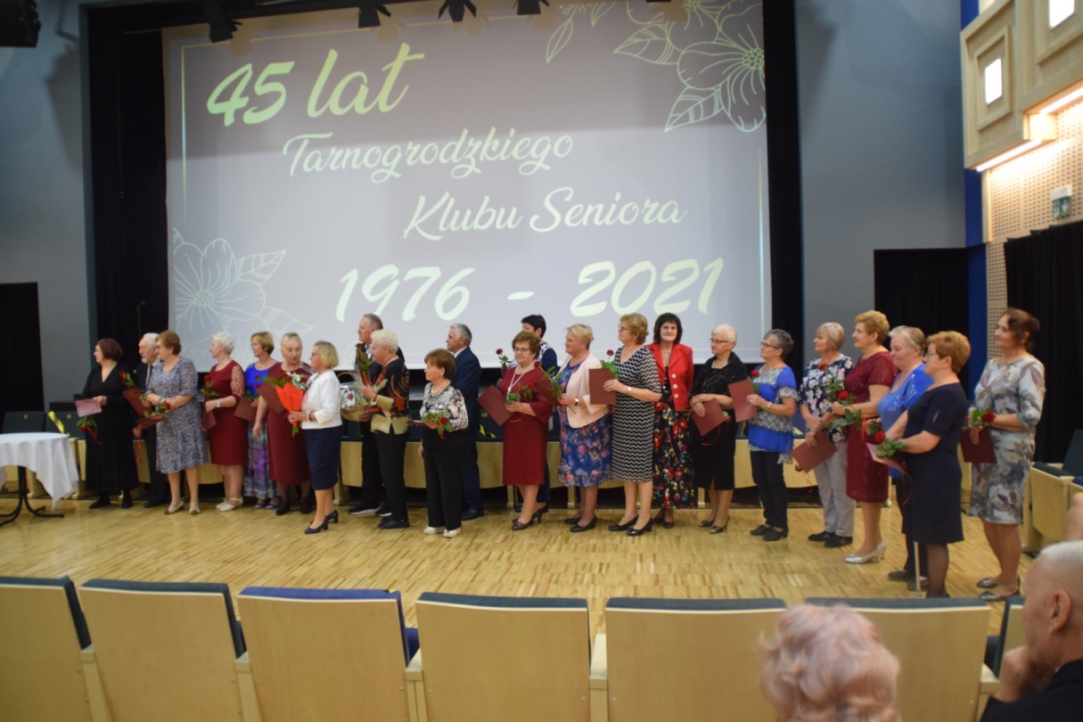 Środa 29 września 2021 to był szczególny dzień w kalendarzu działającego przy Tarnogrodzkim Ośrodku Kultury Klubu Seniora, który obchodził 45 lecie działalności. Czcigodnych jubilatów i zaproszonych gości przywitała dyrektor TOK-u Renata Ćwik, która wyraziła głęboką wdzięczność i radość ze wspólnego świętowania takiego jubileuszu. Wśród zaproszonych gości byli burmistrz Tarnogrodu Paweł Dec, wiceburmistrz Tomasz Legieć oraz przewodniczący Rady Miejskiej Dariusz Dołomisiewicz. Gratulacje i upominki złożyli seniorom obecni na tej wyjątkowej gali seniorzy z zaprzyjaźnionych klubów z Dołhobyczowa, Józefowa, Szczebrzeszyna i Zwierzyńca. Życzenia kolejnych wspólnych rocznic w zdrowiu i radości złożył Paweł Dec, dziękując jednocześnie za wspólne spotkanie. Znamienitym gościem jubileuszowej uroczystości była Pani Helena Zając, założycielka Klubu Seniora, na której ręce Tomasz Legieć złożył podziękowania za tyle lat owocnej współpracy. Również członkowie Klubu Seniora podziękowali Pani Helenie za wiele wspólnych lat pełnych działań i twórczej aktywności.