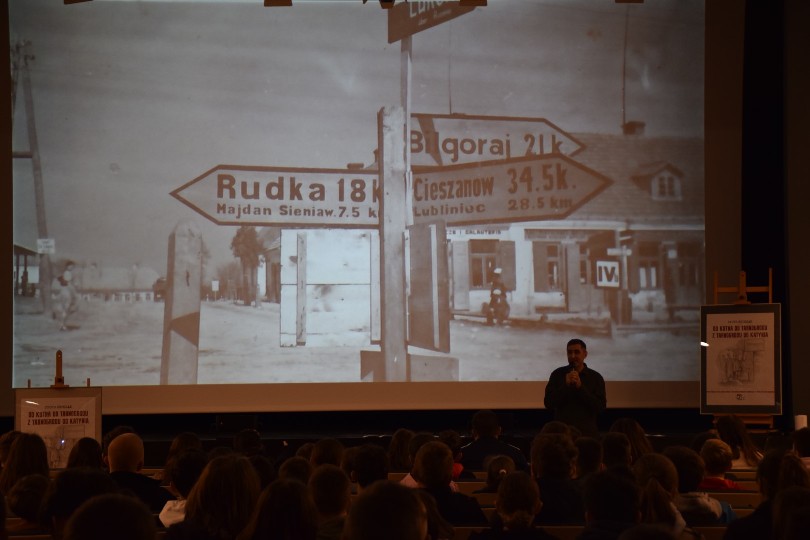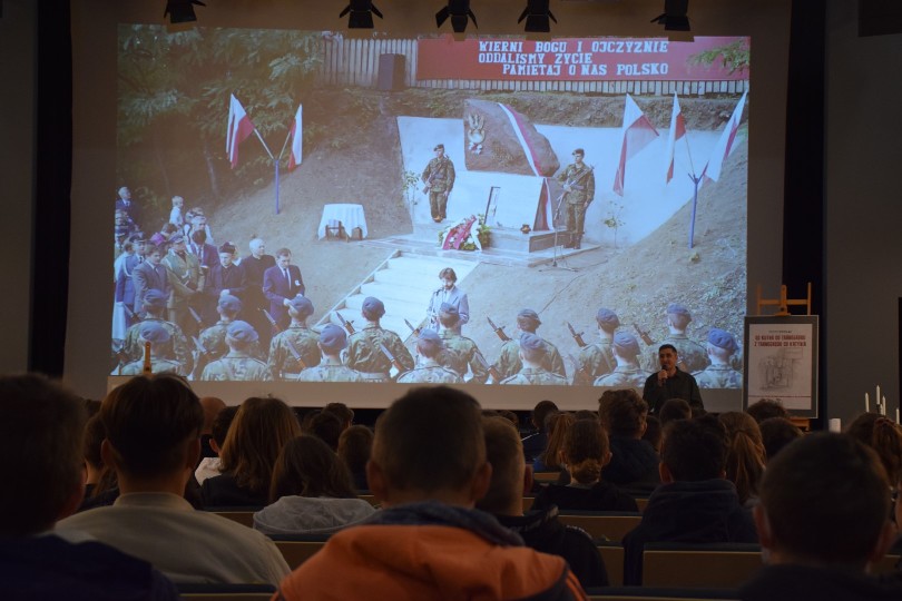 Autor opowiedział o tym, skąd wziął się pomysł napisania książki o oficerach i podchorążych zamordowanych w Katyniu, jak długo zbierał materiały. Przybliżył uczniom historię pomnika katyńskiego, który znajduje się w Tarnogrodzie. Mówił o żołnierzach, których uczczono, stawiając ten obelisk. W trakcie spotkania zadawał pytanie dotyczące II wojny światowej, prezentował zdjęcia, mapy i filmy. Informacje uzupełniała nauczycielka historii z tarnogrodzkiej podstawówki Anna Kuziak, która dzieliła się wspomnieniami swoich dziadków żyjących w tamtym czasie i pomagającym polskim żołnierzom. Na zakończenie spotkania najbardziej aktywnym uczestnikom Piotr Kupczak podarował egzemplarze swojej książki.