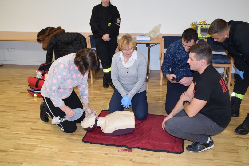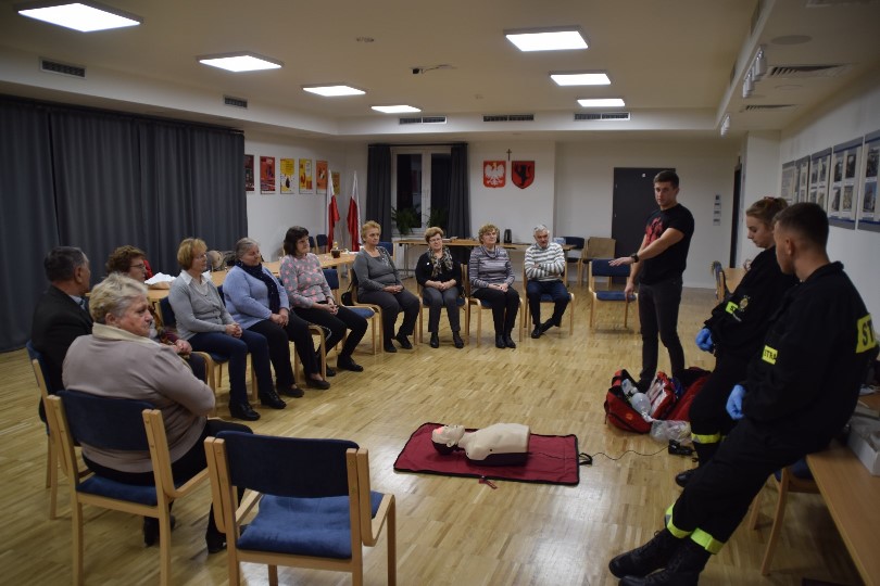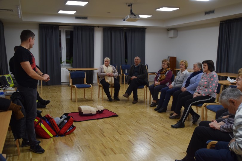 18 listopada 2021 roku odbyły się zajęcia z zakresu udzielania pierwszej pomocy przedmedycznej. Seniorzy mieli okazję utrwalić zasady udzielania pierwszej pomocy, których znajomość jest niezbędna w codziennym życiu. W trakcie zajęć nie zabrało pracy z defibrylatorem AED. To stosunkowo niewielkie urządzenie przy pomocy człowieka może uratować życie. Jego wczesne użycie może uratować osoby, u których doszło do zatrzymania krążenia.