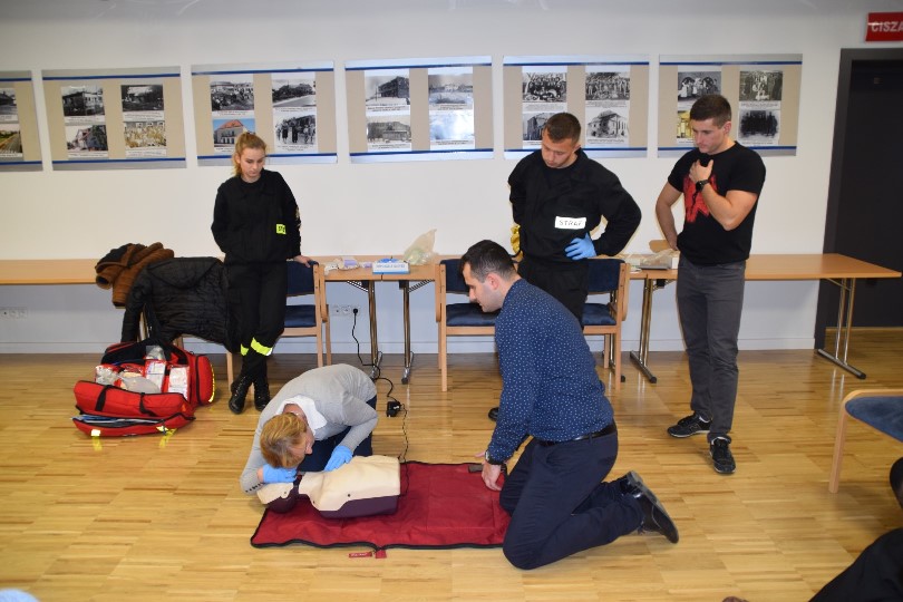 Zajęcia praktyczne połączone z wykładem przeprowadził ratownik medyczny Łukasz Czuchra oraz strażacy – ratownicy z OSP Tarnogród – Marta Bosek oraz Jakub Wańczyk. Tematyka warsztatów dotyczyła podstawowych zasad udzielania pierwszej pomocy przedmedycznej. Zaprezentowano praktyczne ćwiczenia postępowania z osobą poszkodowaną, np.: sprawdzenie oddechu, prawidłowe ułożenia osoby poszkodowanej w pozycji bocznej ustalonej oraz prowadzenie resuscytacji krążeniowo-oddechowej. Prowadzący zajęcia podkreślał, że dla ludzkiego życia najważniejsze są pierwsze cztery minuty, gdy dojdzie do zatrzymania krążenia. Zajęcia spotkały się z dużym zainteresowaniem, a wszyscy obecni zaangażowali się w tematykę wykładu i ćwiczenia praktyczne.