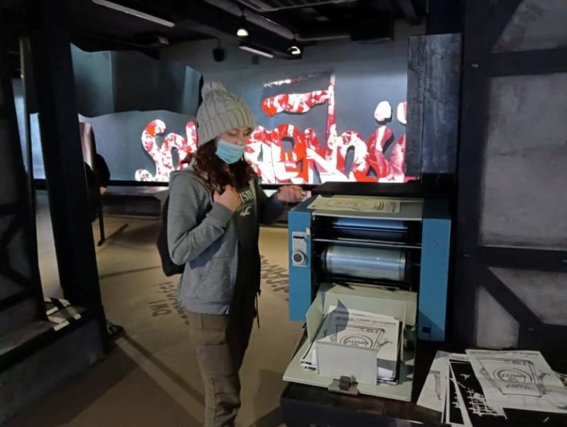 Wolontariuszki uczestniczące w wycieczce mogły użyć sprzętów, które w tamtym czasie były wykorzystywane do przekazywania informacji: dalekopisu, telefonu z korbą, maszyny do pisania, sprzętu do powielania ulotek. Poznały warunki życia internowanych i zwykłych ludzi w stanie wojennym. Wystawa zrobiła na nas ogromne wrażenie. Sposób opowiadania o kolejnych etapach pacyfikacji, efekty świetlne, akustyczne, multimedia, rozwiązania interaktywne dały możliwość przeniesienia się w czasie. Przejmujące relacje świadków zdarzeń i rodzin pomordowanych wyciskały łzę w oku. Trudno było uwierzyć, że oprawcami byli Polacy… Taka lekcja historii na pewno na długo zapadnie w pamięci i młodzieży, i dorosłym.