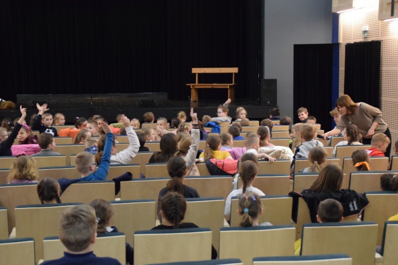 Przed spektaklem porozmawialiśmy o tym, czym jest teatr, kto pracuje w teatrze, jak należy się zachowywać podczas przedstawień i próbowaliśmy odpowiedzieć sobie na bardzo trudne pytanie: po co jest teatr?