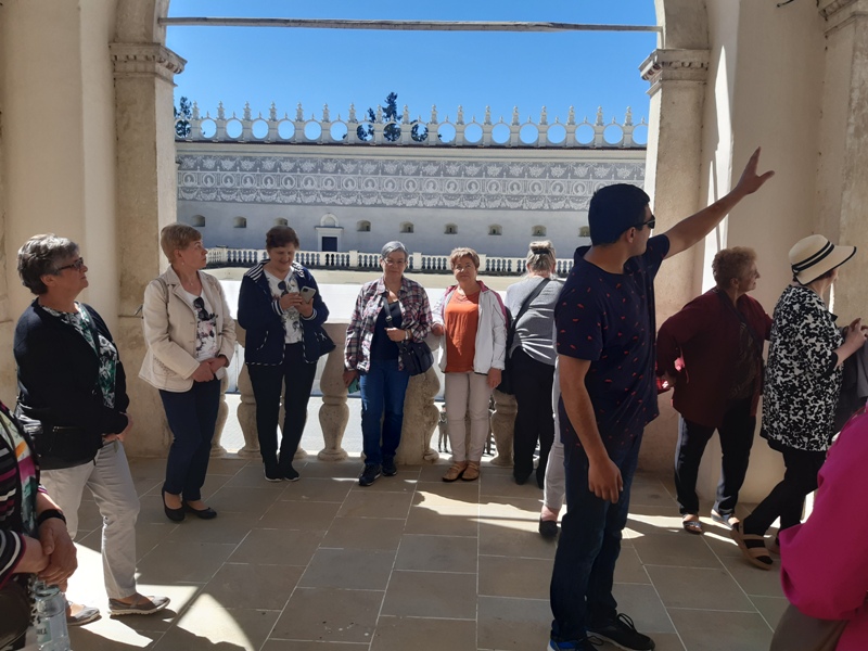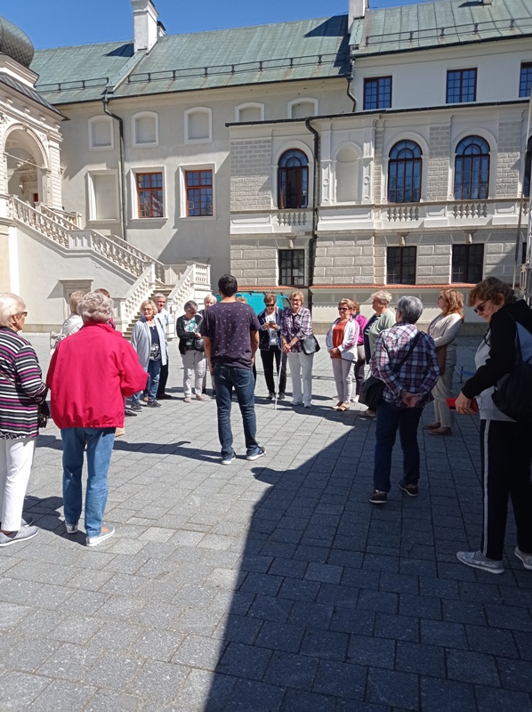 Wyjazd rozpoczął się od zwiedzania dziedzińca i zamku w Krasiczynie. Seniorzy z ciekawością słuchali historii zamku i jego mieszkańców opowiedzianej przez przewodnika, a następnie spacerowali po pięknym parku wokół dziedzińca.