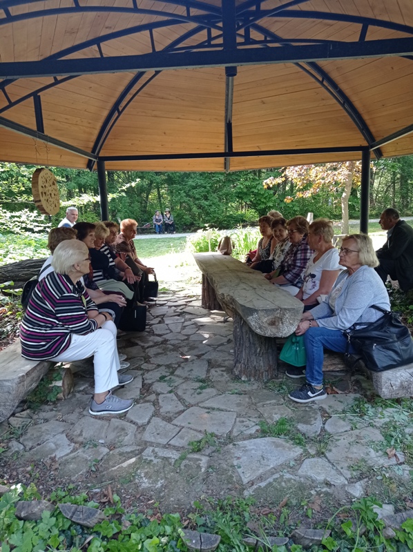 Kolejnym punktem wycieczki było Arboretum w Bolestraszycach. Tam seniorzy spacerowali po urokliwych zakątkach ogrodu. Wymieniali się swoją wiedzą ogrodniczą i zielarską. Nie zabrakło chwil na odpoczynek i wspólne śpiewanie. Pogoda i humory dopisały, więc wyjazd był bardzo udany.