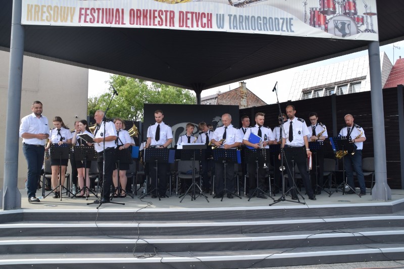 A to było tak: kapelmistrz tarnogrodzkiej orkiestry wymarzył sobie, żeby zrobić w Tarnogrodzie festiwal. Spotkał się, oczywiście, z ogromną przychylnością burmistrza i dyrektorki Tarnogrodzkiego Ośrodka Kultury i oto spotkaliśmy się w ostatnią czerwcową niedzielę w centrum kolorowego i upalnego Tarnogrodu. Letnia scena Tarnogrodzkiego Ośrodka Kultury gościła sześć orkiestr, które zgłosiły się do uczestnictwa w I Kresowym Festiwalu Orkiestr Dętych. Po uroczystym przemarszu na plac przy TOK Burmistrz Tarnogrodu Paweł Dec powitał wszystkich zgromadzonych, wspomniał o obchodzonej tego dnia 79. rocznicy wysiedlenia mieszkańców gminy Tarnogród i zaprosił wszystkie orkiestry do wspólnego odegrania hymnu państwowego. Po tym patriotycznym akcencie grupy wspólnie wykonały utwór Orkiestry dęte, po czym burmistrz dokonał uroczystego otwarcia imprezy. Nastąpiło kilka godzin koncertowania. Podziwialiśmy występy zaproszonych orkiestr. Swoją obecnością zaszczyciły nas: Gminna Orkiestra Dęta „Złota Nuta” z Biszczy z kapelmistrzem Ryszardem Jeleniem, Krasnobrodzka Orkiestra Dęta z kapelmistrzem Mateuszem Krawcem, Orkiestra Dęta OSP Majdan Sieniawski z kapelmistrzem Michałem Rydzikiem, Orkiestra Dęta z Obszy z kapelmistrzem Michałem Gizą, Orkiestra Dęta ze Zwierzyńca z kapelmistrzem Mariuszem Czochrą, no i naturalnie wystąpiła nasza Tarnogrodzka Orkiestra Dęta z Grzegorzem Szteinmillerem na czele. Razem 133 muzyków! Jako gospodarze czujemy się zaszczyceni obecnością tak wielu znakomitych orkiestr.