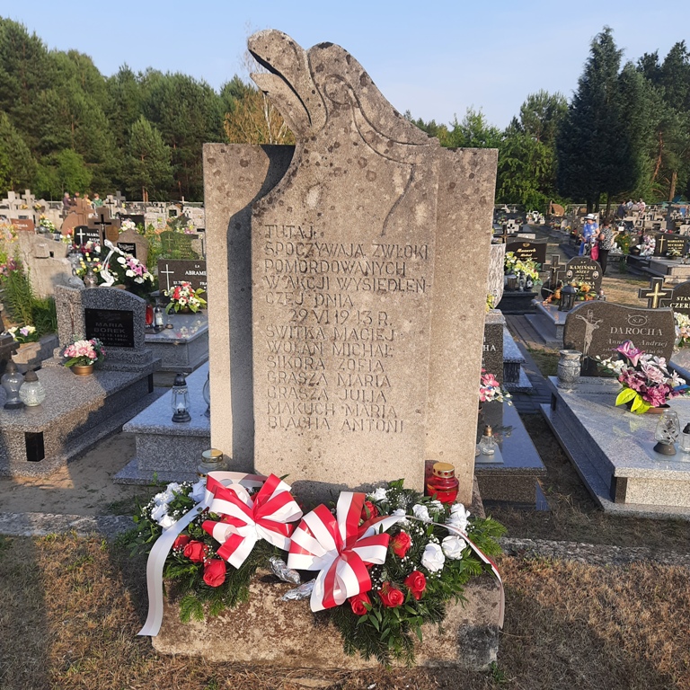 Przy pomniku upamiętniającym pomordowanych w akcji wysiedleńczej 29 VI 1943 r. przybyłe delegacje wraz z ks. Waldemarem Dudzińskim oddali hołd pomordowanym oraz złożyli wieńce i znicze.