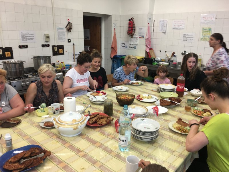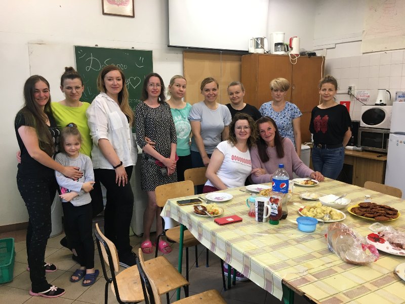 Kolejne wspólne gotowanie miało miejsce tydzień później – tym razem wspólnie przygotowałyśmy barszcz ukraiński, hołubcie (gołąbki), dwie sałatki, pampuszki z czosnkiem i ziołami, a na deser tort z kajmakiem. Dodatkowo dziewczyny z Ukrainy przyrządziły sało z czosnkiem. Wspaniałe i niespotykane dla nas smaki, które będziemy długo wspominać... Wspólnie spędzone przedpołudnia i smaczne polskie i ukraińskie posiłki pozwoliły nam zapomnieć o troskach dnia codziennego i miło spędzić czas.