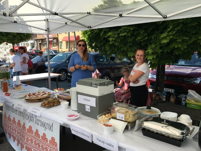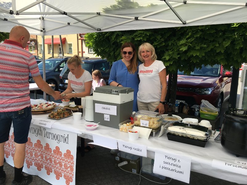 Ostatni weekend czerwca również był bardzo pracowity. W sobotę piekłyśmy ciasta i ciasteczka, gotowałyśmy forszmak, (niektórzy aktywni mężowie także przygotowali chłodnik!), lepiłyśmy wszelakiego rodzaju pierogi i przygotowywałyśmy napoje, aby mieć jak najbogatszą ofertę dla uczestników I Kresowego Festiwalu Orkiestr Dętych, który odbył się na tarnogrodzkim rynku. Publiczność zaspokoiła swoje potrzeby kulturalne, słuchając przez kilka godzin najwyższych lotów orkiestrowej muzyki, ale również poszukiwała rozkoszy dla podniebienia, a te znajdowała na naszym stoisku właśnie. Dziękujemy za wspólnie spędzony czas.