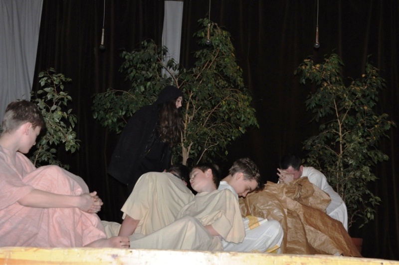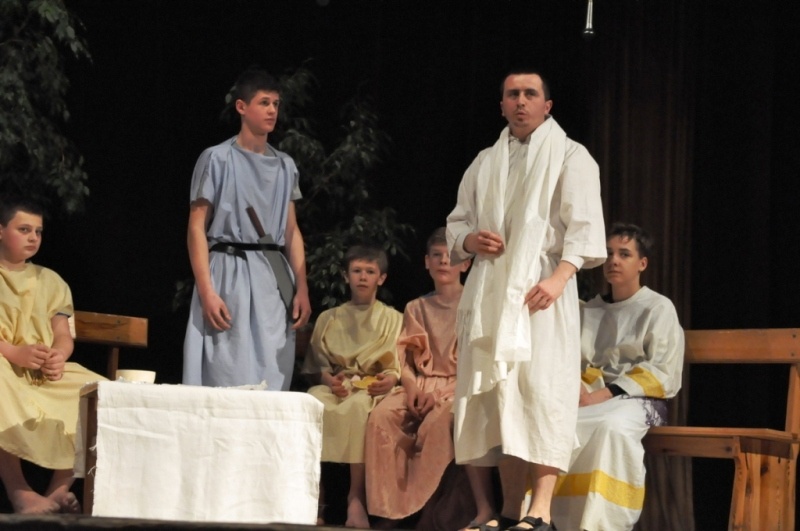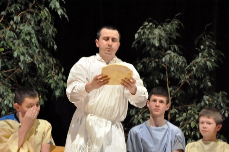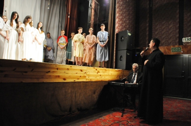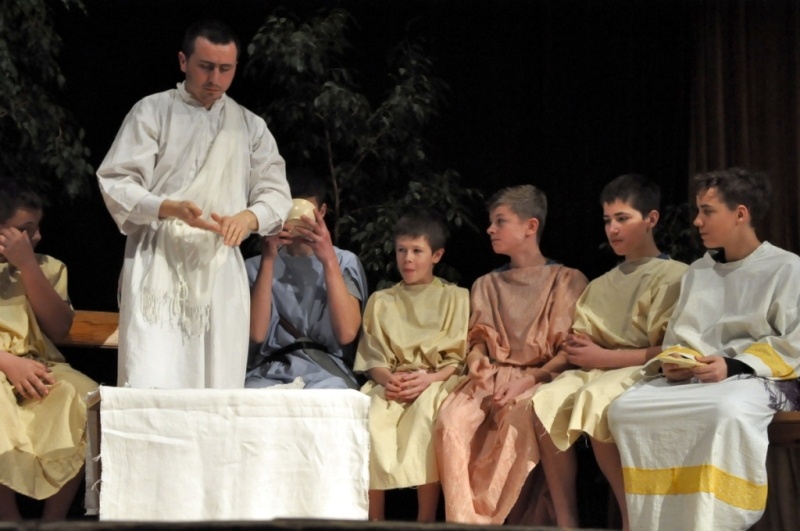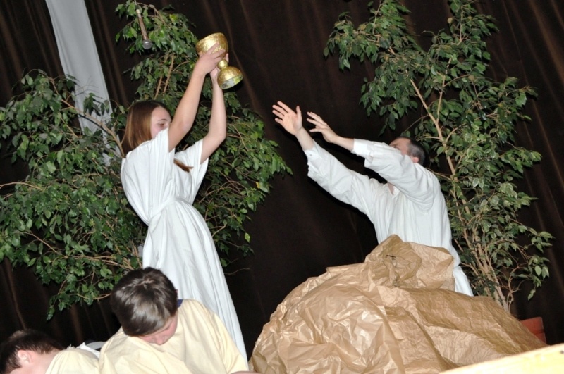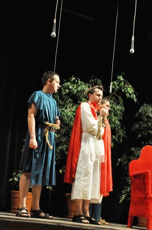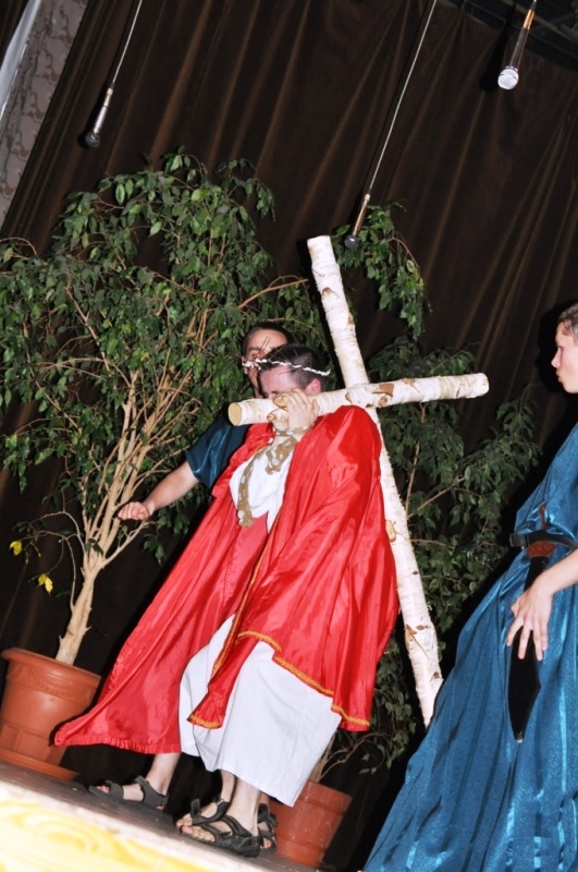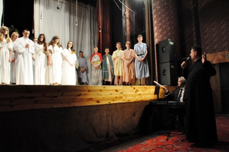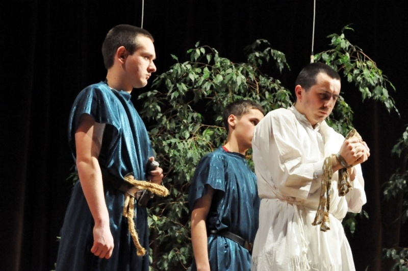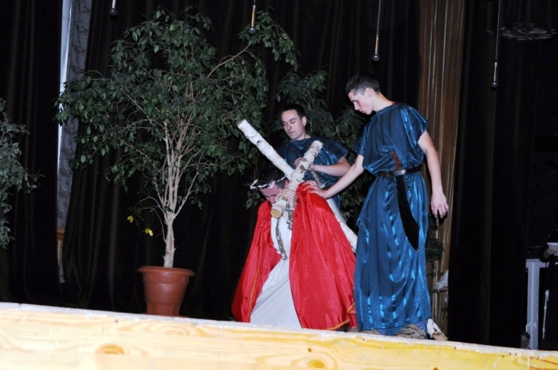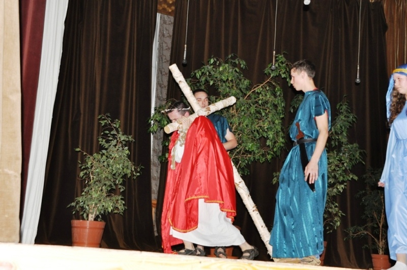 W siedmiu scenach pokazali ostatnie godziny życia Jezusa oraz triumf Jego Zmartwychwstania. W roli głównej wystąpił ksiądz Grzegorz Szlązak, a całość przygotowała Siostra Jadwiga Anna Tabor przy współpracy z Panią Jolantą Grelak i Panem Andrzejem Kusiakiem. W przedsięwzięciu wzięło udział 60 uczniów, którzy wcielili się w role Apostołów, żołnierzy, ludzi z tłumu żyjących ponad dwa tysiące lat temu.