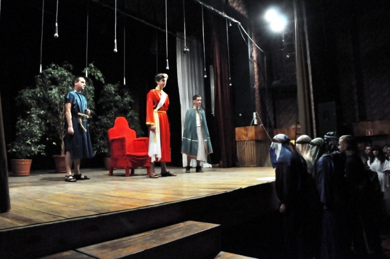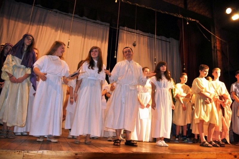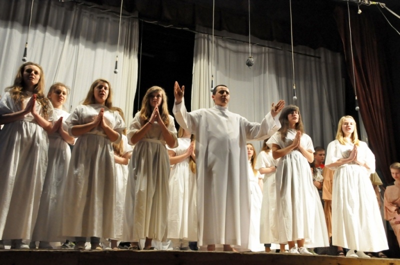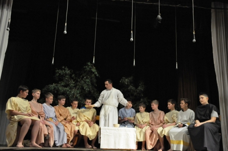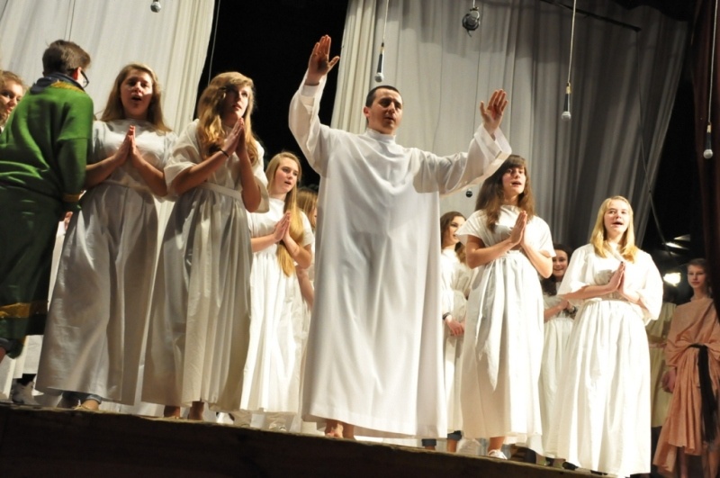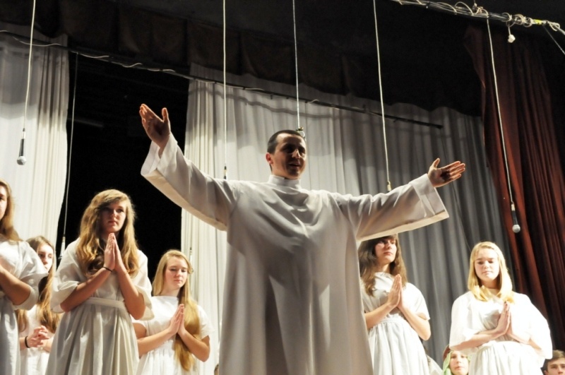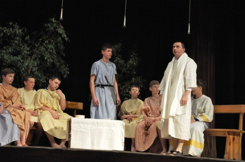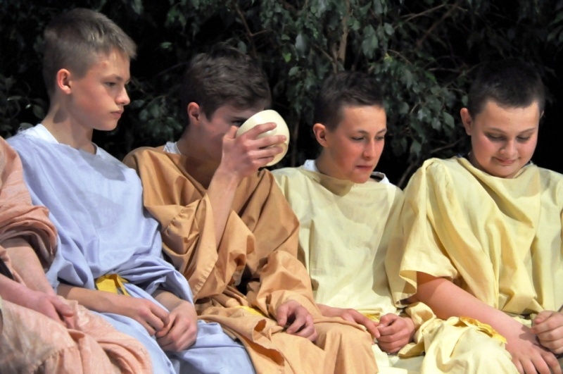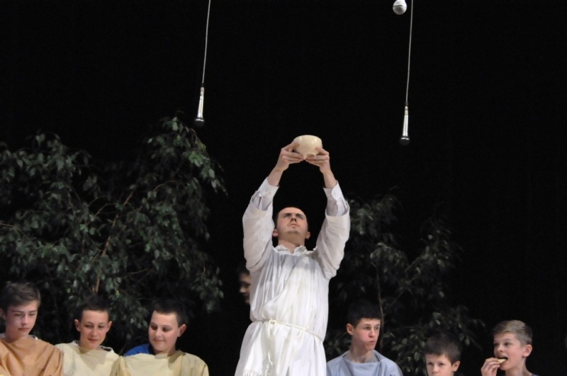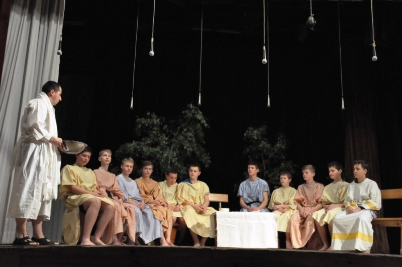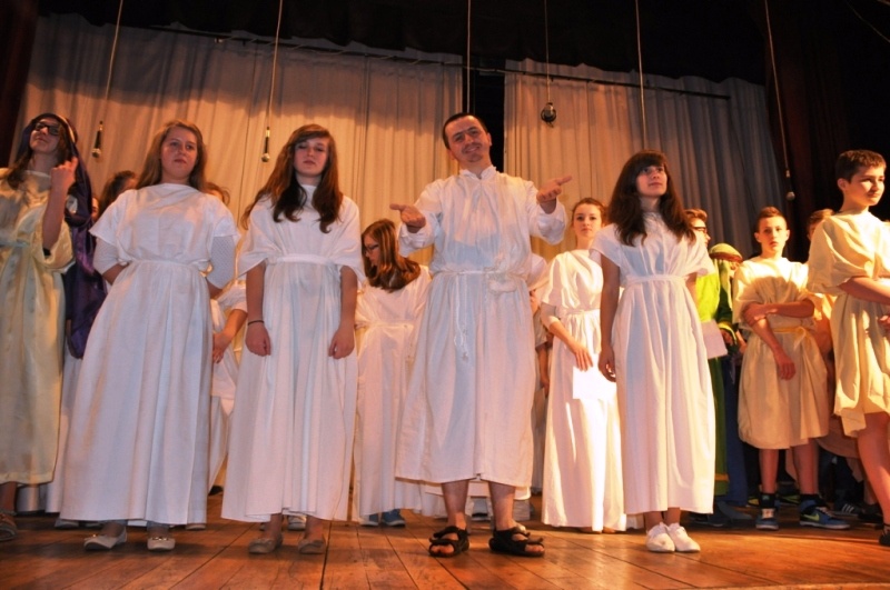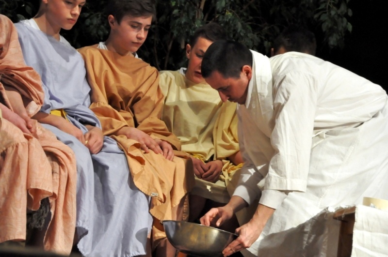 W siedmiu scenach pokazali ostatnie godziny życia Jezusa oraz triumf Jego Zmartwychwstania. W roli głównej wystąpił ksiądz Grzegorz Szlązak, a całość przygotowała Siostra Jadwiga Anna Tabor przy współpracy z Panią Jolantą Grelak i Panem Andrzejem Kusiakiem. W przedsięwzięciu wzięło udział 60 uczniów, którzy wcielili się w role Apostołów, żołnierzy, ludzi z tłumu żyjących ponad dwa tysiące lat temu.