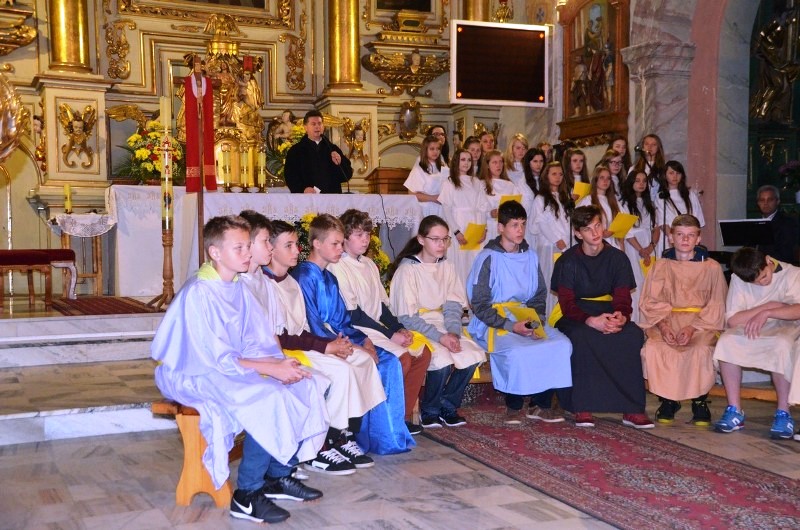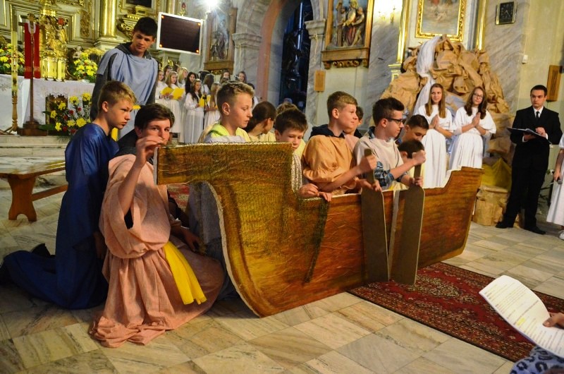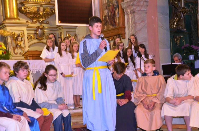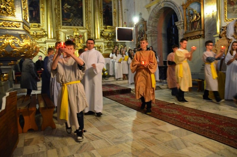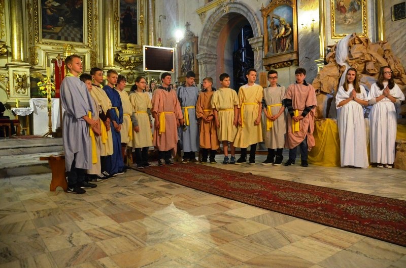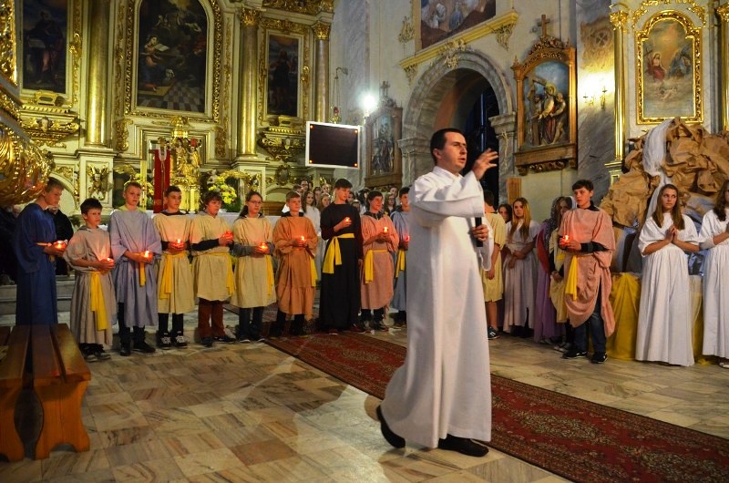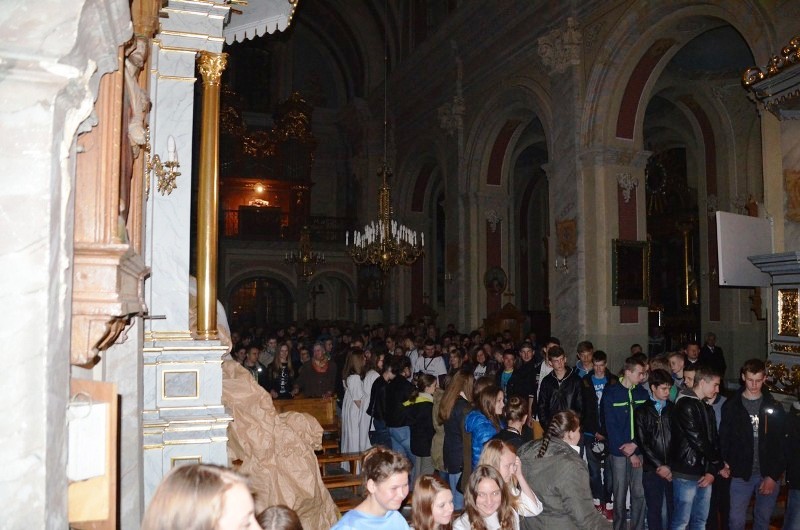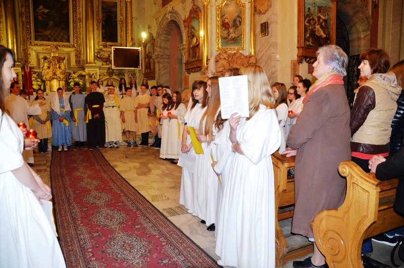 W atmosferę przywitania symboli Światowych Dni Młodzieży w Parafii Przemienienia Pańskiego w Tarnogrodzie: Krzyża Roku Świętego i Ikony Matki Bożej „Salus Populi Romani" wprowadzili nas uczniowie Publicznego Gimnazjum w Tarnogrodzie, którzy 10 maja 2015 r. wystawili w kościele Misterium pt. „Droga Światła" - oparte na rozważaniu wydarzeń od Zmartwychwstania Pańskiego do Zesłania Ducha Świętego.