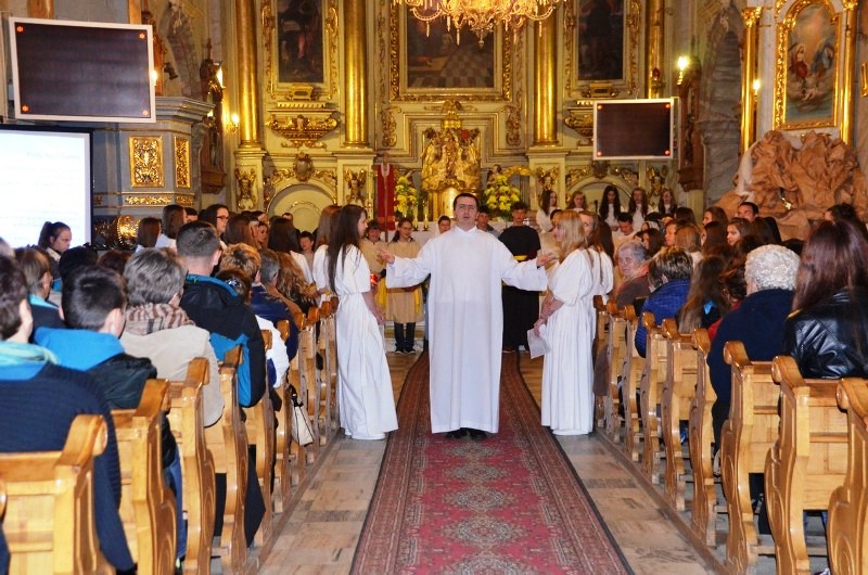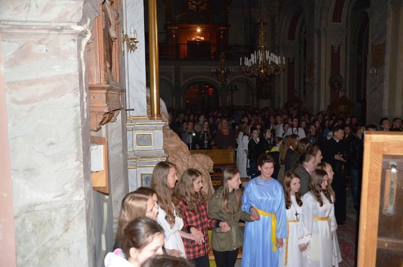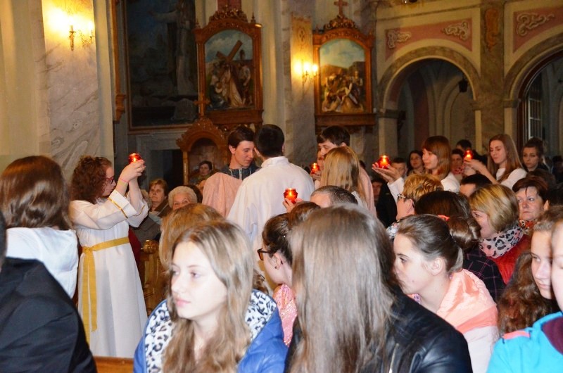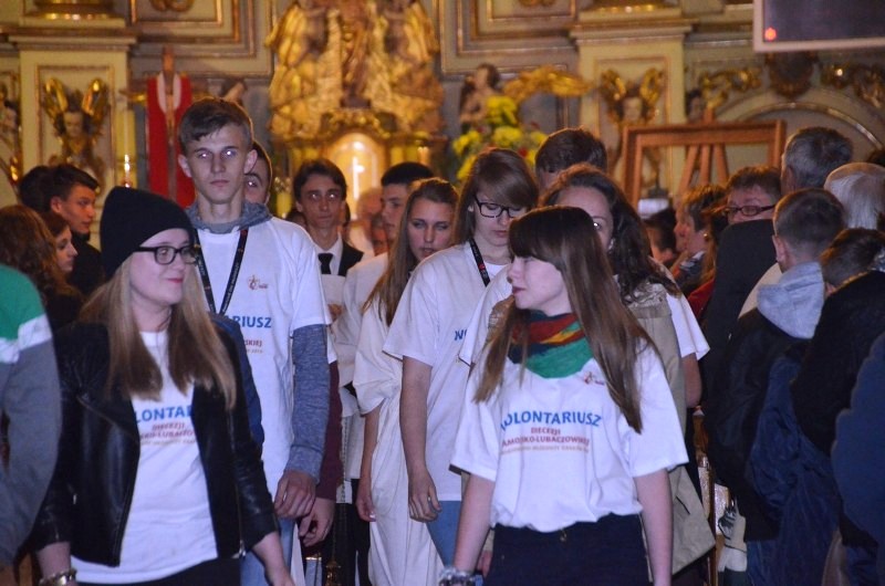 Misterium "Droga Światła" jako duchowe przygotowanie do przyjęcia Krzyża Światowych Dni Młodzieży i Ikony Matki Bożej "Salus Populi Romani" w Parafii Przemienienia Pańskiego w Tarnogrodzie.