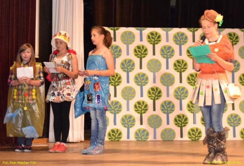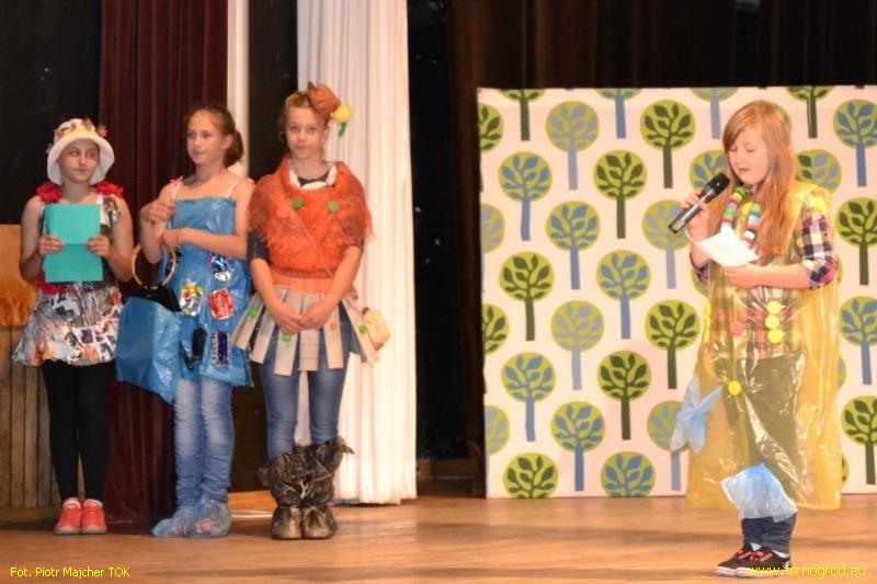 Wiele satysfakcji widzom i uczestnikom dostarczył pokaz mody ekologicznej na wesoło. Każda reprezentacja mogła zaprezentować dowolną ilość stroi. Do ich wykonania dzieci wykorzystywały min. worki foliowe, gazety, puszki, butelki plastikowe. Komisja zwracała uwagę na oryginalność stroju, pomysłowość oraz sposób prezentacji. Wszystkie kryteria spełnili Konrad Sadlej i Michał Malinowski, którzy otrzymali wyróżnienie.