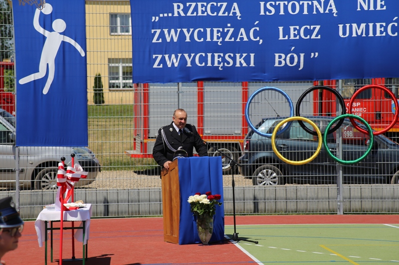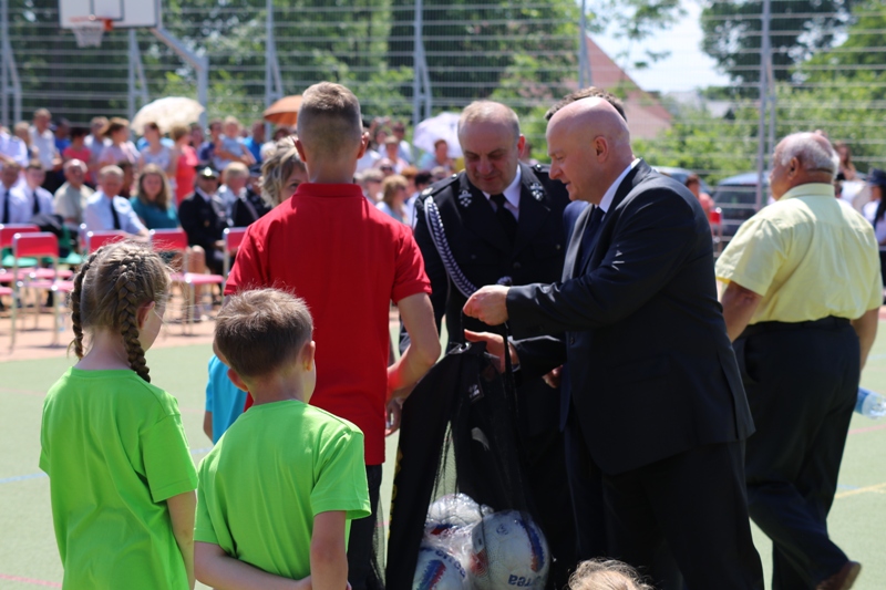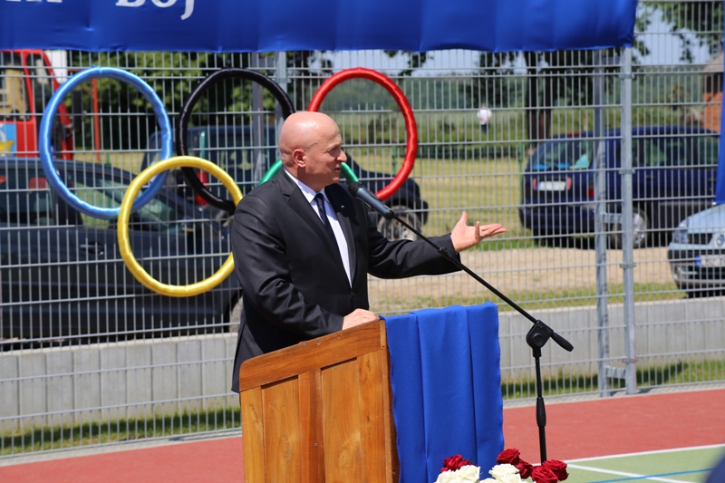 Uroczystość otwarcia boiska wielofunkcyjnego poprzedzona została odegraniem przez orkiestrę dętą Hymnu Państwowego, po czym Burmistrz Tarnogrodu Eugeniusz Stróż serdecznie powitał wszystkich przybyłych gości a przede wszystkim Wiceministra Sportu Pana Jarosława Stawiarskiego. Następnie głos zabierali zaproszeni goście, między innymi Radny Sejmiku Województwa Lubelskiego Michał Mulawa oraz Wiceminister Sportu i Turystyki Jarosław Stawiarski. Dziękując za zaproszenie na uroczystość, przekazali lokalnej młodzieży szkolnej oraz przyszłym użytkownikom powstałej infrastruktury sprzęt sportowy.