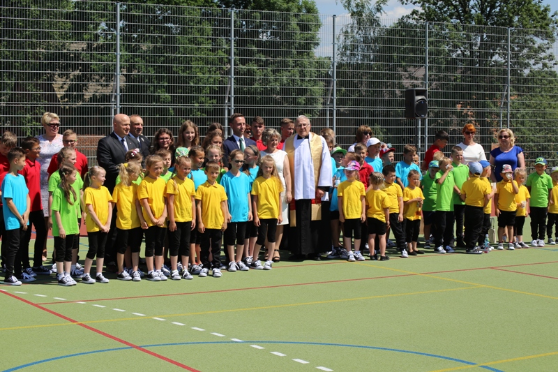 Po wystąpieniach gości, poświęcenia boiska dokonał Ks. Leszek Pankowski, poprzedni Proboszcz lokalnej Parafii. Ostatnim punktem uroczystości była część artystyczna, w wykonaniu uczniów ze Szkoły Podstawowej w Luchowie Dolnym. Dzieci zaprezentowały wszystkim zebranym barwną część artystyczną, nagrodzoną gromkimi brawami.