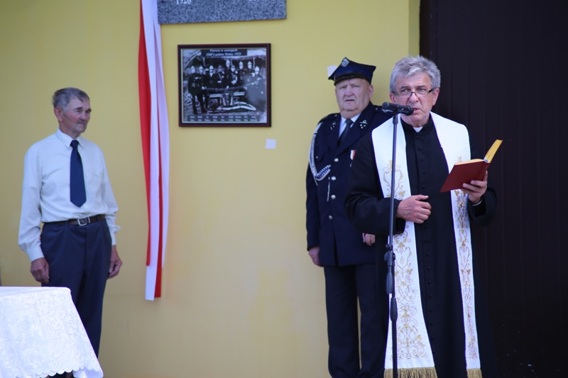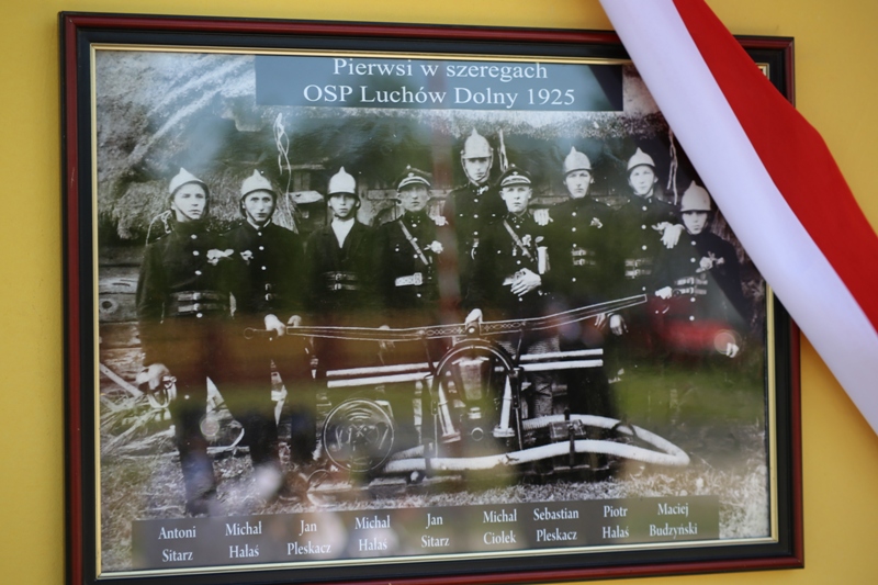 Kolejna część uroczystości odbyła się przed siedzibą OSP Luchów Dolny, tam też wszystkie zastępy OSP wraz z pocztami sztandarowymi a także Tarnogrodzka Orkiestra Dęta zebrali się na placu przed budynkiem OSP. Po wystąpieniach Eugeniusza Stróża Prezesa Zarządu Oddziału Gminnego ZOSP RP w Tarnogrodzie, Starszego Brygadiera Mieczysława Skury – Członka Prezydium Zarządu Oddziału Wojewódzkiego Związku OSP RP oraz Prezesa Zarządu Oddziału Powiatowego Związku OSP RP w Biłgoraju, a także Brygadiera Mirosława Burego – Zastępcy Komendanta Powiatowego Państwowej Straży Pożarnej w Biłgoraju nastąpiło uroczyste poświęcenie tablicy pamiątkowej z okazji 90-lecia OSP Luchów Dolny, którego dokonał Proboszcz Parafii Luchów Górny Ks. Adam Siedlecki. Ostatnią częścią uroczystości było wręczenie odznaczeń dla zasłużonych działaczy OSP Luchów Dolny oraz pozostałych strażaków służących w zastępach OSP na terenie naszej gminy. Na koniec głos zabrał Grzegorz Karaś – Prezes OSP Luchów Dolny, który podziękował wszystkim za udział w uroczystości oraz zaprosił na wspólny poczęstunek.