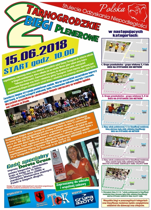 II Tarnogrodzkie Biegi Plenerowe 15 czerwca 2018 r. dla dzieci i młodzieży z Gminy Tarnogrod