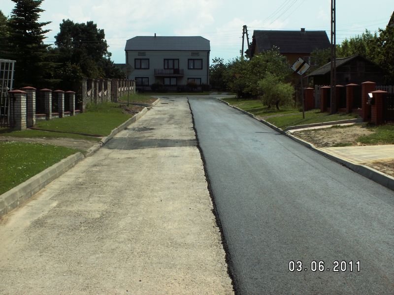 - Budowa drogi gminnej Nr 109500 L w miejscowości Różaniec Pierwszy, km 1+382,00 – 1+502,00.