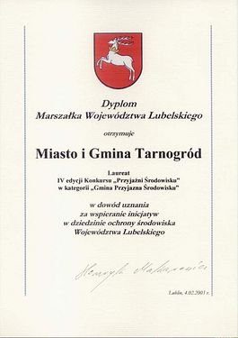 Gmina Tarnogród jako priorytetowe uznała działania na rzecz poprawy stanu środowiska naturalnego. Właściwa proekologiczna polityka władz Gminy nie pozostała bez echa. Efektem było otrzymanie wielu wyróżnień i nagród, min.:
