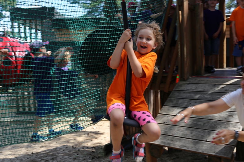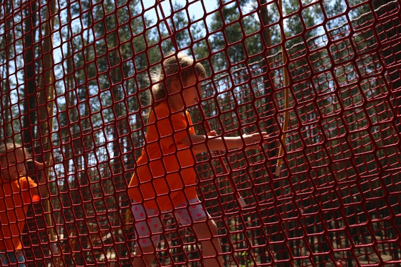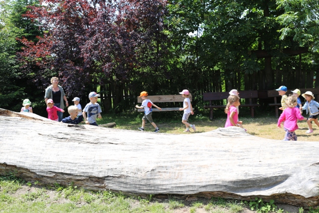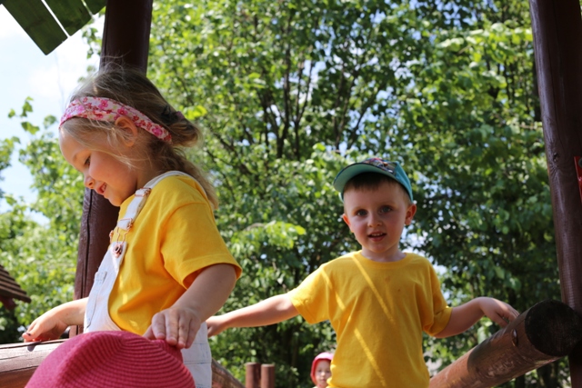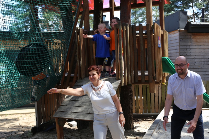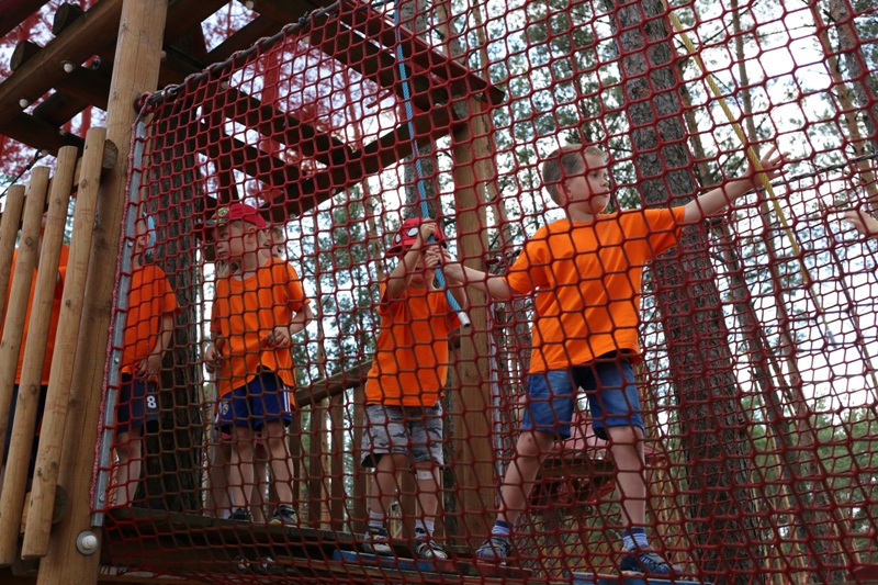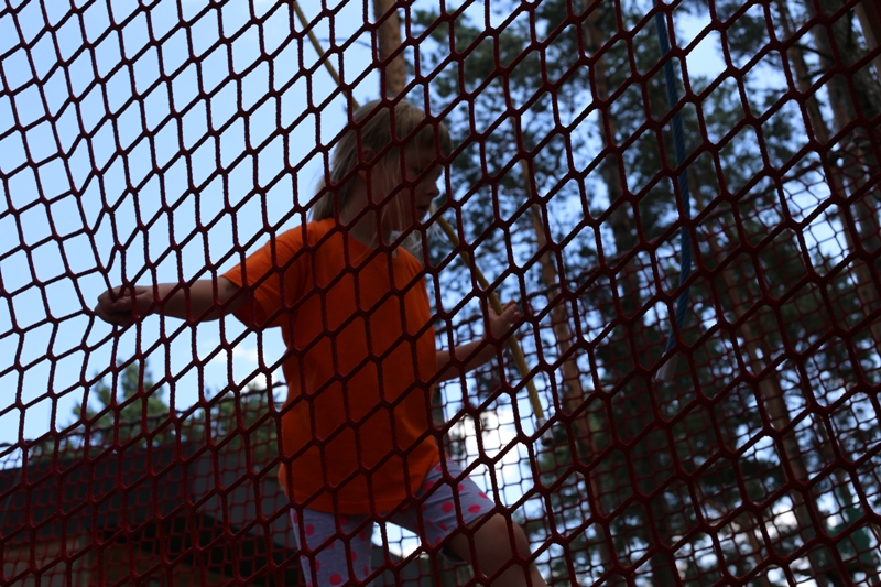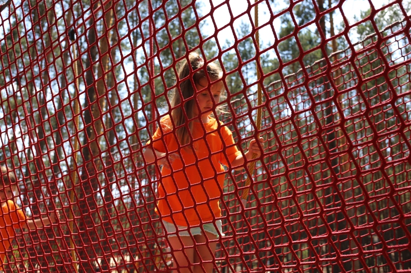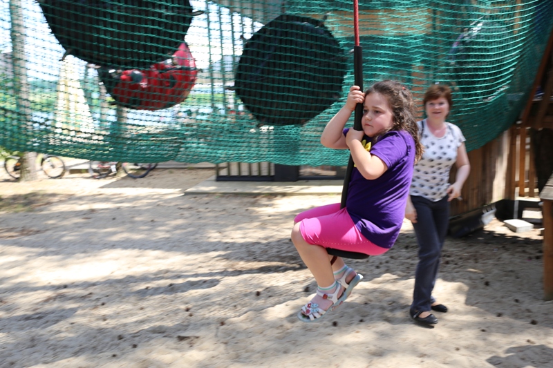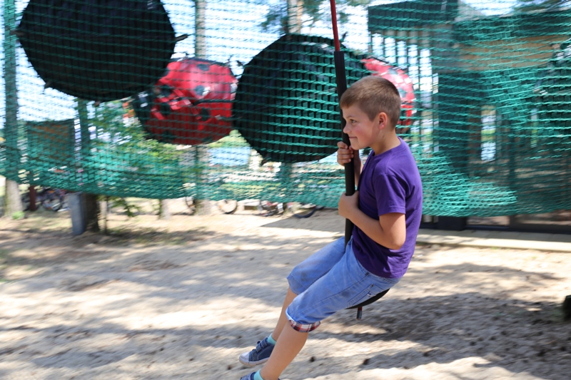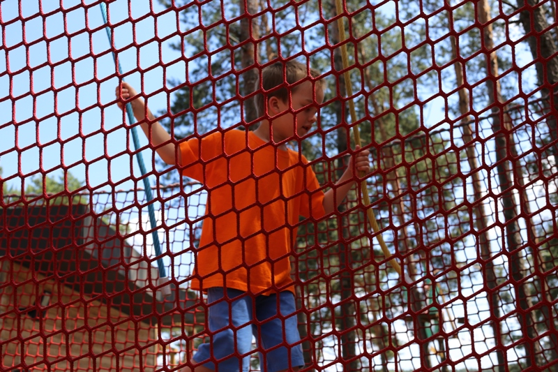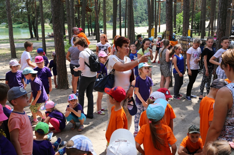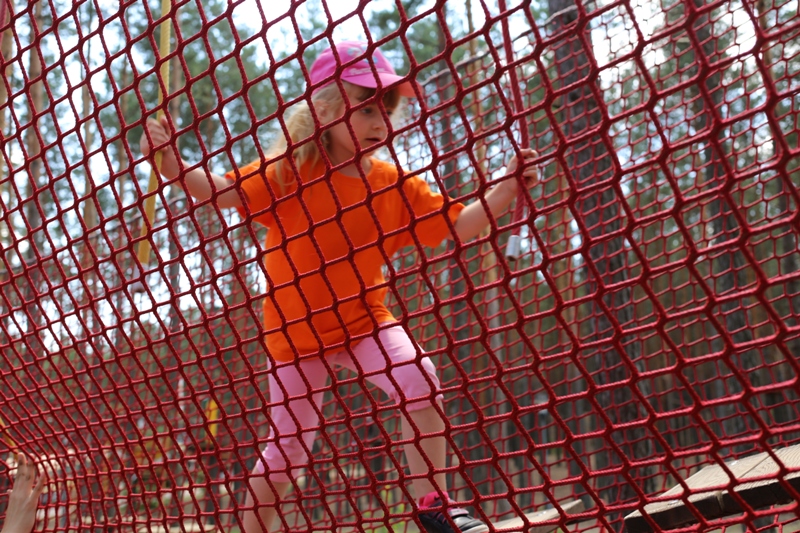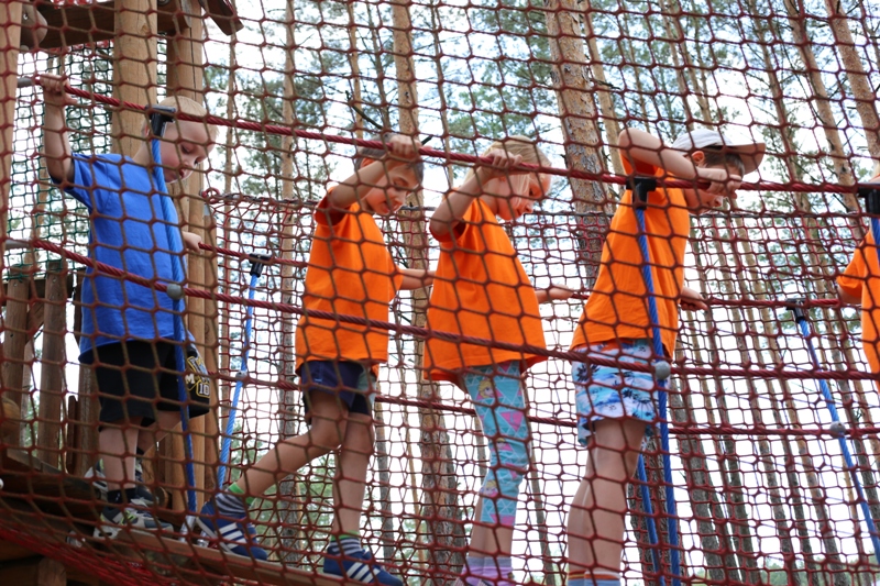 Po konsumpcji obiadu i krótkiej regeneracji, dzieci z Przedszkola Miejskiego w Tarnogrodzie odkrywały uroki parku linowego, gdzie specjalnie dla najmłodszych przygotowano trasę linową z przeszkodami w postaci różnego rodzaju grzybków, podestów, siatek, obręczy i tuneli, a pełne bezpieczeństwo zapewniła siatka asekuracyjna chroniąca przedszkolaki na całej trasie.