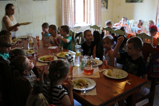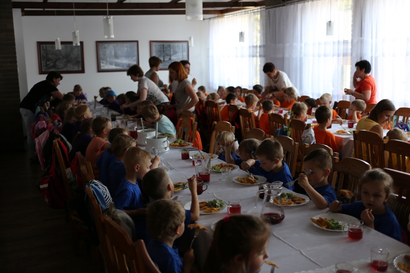 Dużym przeżyciem było zwiedzenie mini stadniny koni różnych ras i maści. Poznanie pracy w stajni, zapoznanie się z końmi, pokaz czyszczenia i siodłania konia, wszystko to stanowiło zachętę do odkrywania dalszych przygód. Najmłodszym z pewnością spodobały się zespołowe gry na świeżym powietrzu, w których brali udział podzieleni na drużyny oraz odpoczynek na placu zabaw.