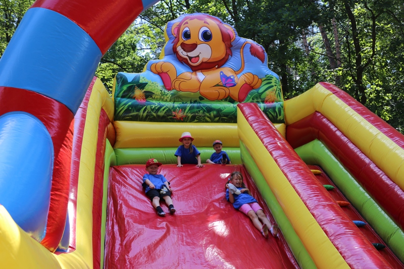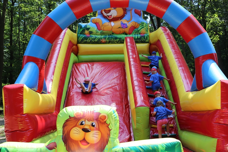 W Parku przedszkolaki chętnie rozwijały zmysł równowagi i ćwiczyły gibkość, biorąc udział w zajęciach sprawnościowych na dmuchańcach. Kolejną atrakcją przygotowaną dla dzieci była gra terenowa, gdzie bawiąc się w poszukiwaczy skarbów, przedszkolaki zdobywały słodkie fanty.